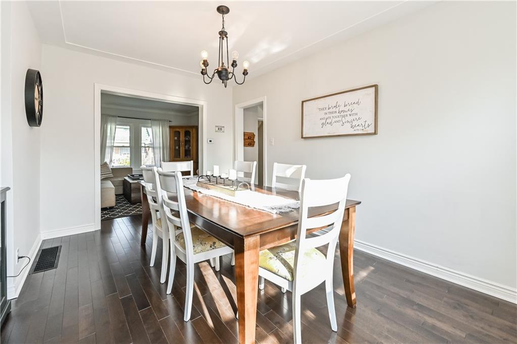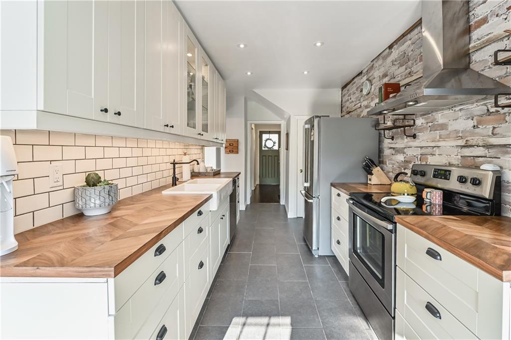 | Excellent opportunity in Hamilton’s trendy Crown Point neighbourhood! Beautifully renovated 2.5 storey home with 4 bedrooms and 1 bathroom. Features include newer hardwood flooring, updated tile flooring, an updated kitchen with an exposed brick wall/tasteful white cabinetry/stainless steel appliances/herringbone butcher block countertops/subway tile backsplash/dinette area, formal dining room, large master bedroom, updated 4 piece bathroom, bonus 4th spacious bedroom in 3rd level, 1.5 car garage at the rear for parking/storage, charming front porch, rear patio area with pergola, and more. Other updates to mention include furnace, central air conditioning, HRV system, water filtration system, electrical on breakers, roof shingles on the house, and more. A short walk to the shops and restaurants along Hamilton’s revitalized Ottawa Street N, Gage Park, and more. |