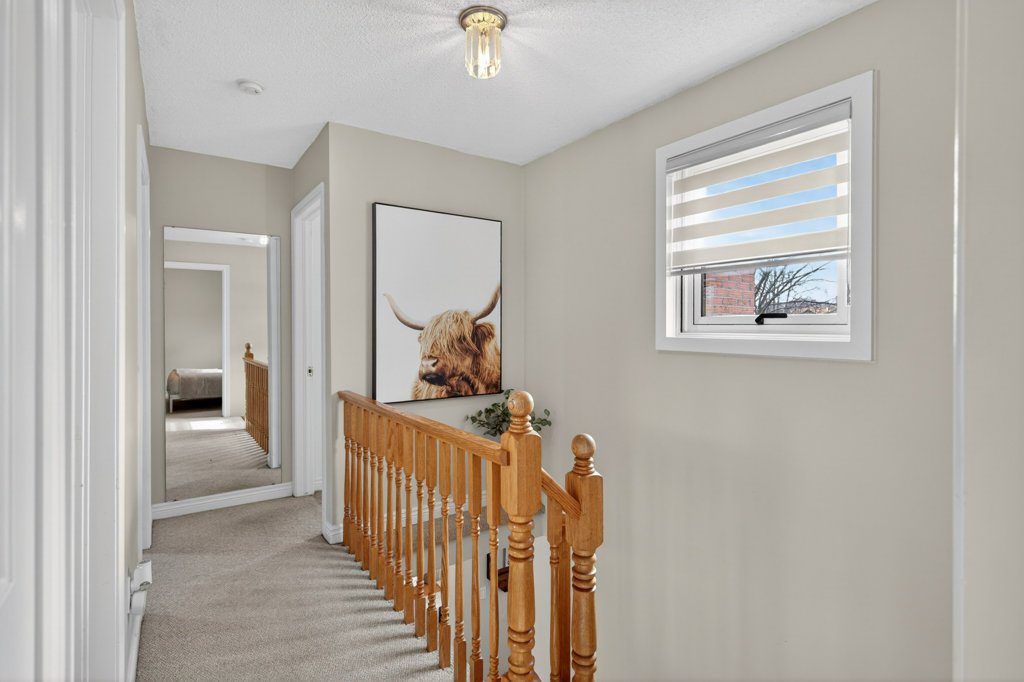 Welcome to this inviting family home, offering 1,523 sq ft above grade plus a fully finished basement, set on a pie-shaped lot with an expansive backyard designed for both relaxation and play. With 3 bedrooms and 2.5 bathrooms, this home delivers the perfect blend of comfort, functionality, and lifestyle; ideal for growing families. Set on a quiet, dead-end court, the home enjoys a serene, private setting with a spacious yard, along with a 1.5-car garage & 4 driveway spaces, providing ample parking for busy households and guests. Inside, the main floor features a bright, open layout designed for everyday living and entertaining. At the heart of the home is the beautifully renovated kitchen (2022), which flows seamlessly into the well-appointed front living room, anchored by large windows and natural light, and into the dining room, creating an ideal space for gathering with family and friends. The kitchen is thoughtfully designed with white cabinetry, pot lighting, and stainless steel appliances including a fridge (2022), dishwasher (2022), and stove (2024), along with stunning quartzite countertops and a matching island. Stylish touches like the backsplash and a convenient pot filler at the stove add both character and functionality. The main level is completed by a renovated 2-piece powder room (2022) and a cozy family room featuring a charming wood-burning fireplace, perfect for relaxing evenings. Upstairs, three well-proportioned bedrooms provide comfortable retreats. The spacious primary suite features a private 4-piece ensuite with a shower/tub combo, while the updated 5-piece main bathroom (2025), featuring a double vanity & shower/tub combo offers both style and functionality. The fully finished basement extends the living space with a large recreation room, ideal for movie nights, a play area, or entertaining, along with a separate room currently used as a home gym, offering flexibility to suit your needs. A generous laundry and storage area includes a stacked washer and dryer (2022), providing added convenience. Step outside to the pie-shaped backyard featuring both green space and an expansive patio; perfect for kids, pets, and summer entertaining. Significant mechanical updates provide peace of mind, including a new furnace (2025), hot water tank (2025), A/C unit (2026), and all windows (2026), ensuring comfort and efficiency for years to come. Ideally situated in the heart of Burlington’s sought-after Maple neighbourhood, this home is just minutes from Mapleview Shopping Centre, Joseph Brant Hospital, vibrant downtown Burlington, and the scenic Burlington Waterfront, with easy access to parks, shopping, dining, and commuter routes.