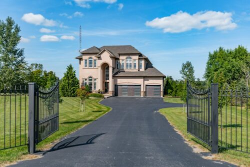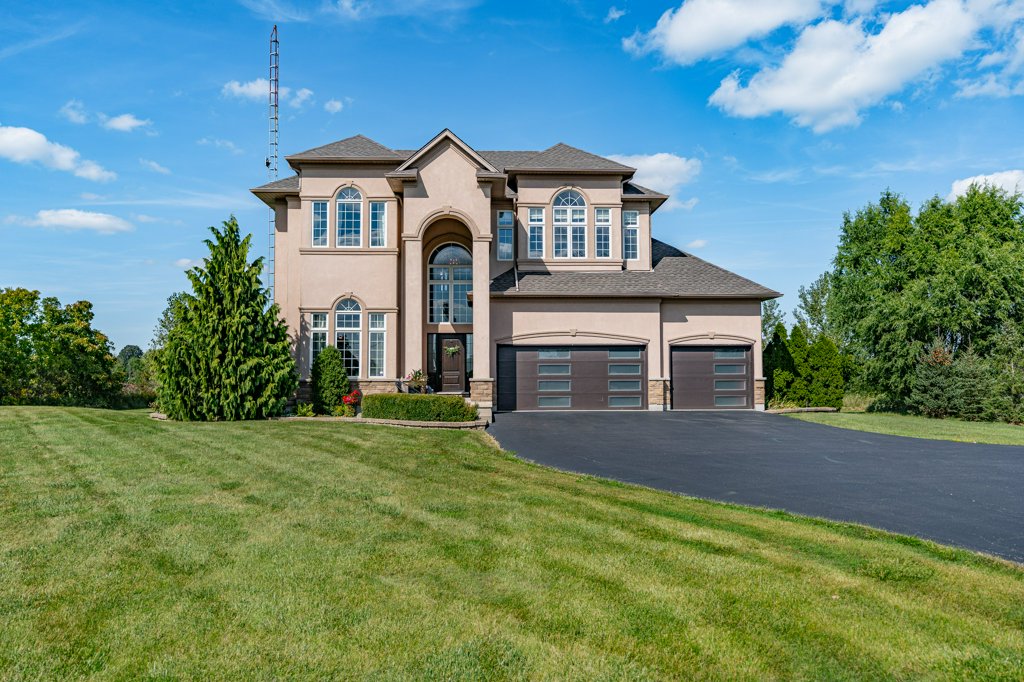 Discover your dream home nestled in scenic Brant County. This luxurious 4-bedroom, 4-bathroom residence is a true masterpiece, offering over 3,885 square feet of living space above grade (plus a partially finished basement) on a sprawling 1.334-acre private lot with picturesque surroundings. As you approach the home, you’ll be impressed with the gated entrance which opens to the surfaced driveway with parking for over 10 vehicles, making this property perfect for hosting friends and family. The garage can accommodate 4 vehicles as one of the garage bays includes a unique tandem space. Step inside to a grand foyer with soaring ceilings that set the tone for this elegant home. The main floor boasts rich hardwood flooring, a formal dining room adorned with crown moulding and pot lighting, and a sophisticated butler’s servery with custom cabinetry. The heart of the home is a show-stopping, renovated kitchen (2019) designed to inspire. Featuring pristine white cabinetry, sleek quartz countertops, and top-of-the-line stainless steel appliances, including a JennAir fridge, Dacor gas range, and Miele wall oven, microwave, and dishwasher. An oversized island offers seating for four or more, complemented by a separate beverage fridge and a cozy dinette area with expansive windows that frame picturesque views of the rear property. The adjoining great room impresses with tray ceilings, crown moulding, uplighting, and custom bench seating, all centred around a striking gas fireplace. French doors lead to the lush backyard oasis, perfect for both tranquil relaxation and entertaining guests. The upper level unveils a serene primary retreat with double doors, featuring a lavish 5-piece ensuite bathroom complete with double sinks, granite countertops, a makeup vanity, an oversized glass shower, a jetted tub, and a private water closet. The oversized walk-in closet ensures ample storage. Three additional spacious bedrooms share a beautifully appointed 5-piece bathroom, with custom built-in cabinetry in the upper hall that overlooks the stately foyer and dining room below. The partially finished lower level extends the living space with durable laminate flooring, a large recreation room highlighted by a stacked-stone accent wall, an office/den with French doors, a 2-piece bathroom, and plenty of storage space. The furnace was replaced in 2019. Outside, the interlock rear patio, fire pit, and mature foliage create a serene retreat. Enjoy the privacy and tranquility of nature, as deer and other wildlife pass by. Located minutes from major urban amenities in Caledonia, Brantford, Ancaster, and Hamilton, this home provides the perfect balance of rural charm and urban convenience. With breathtaking views and a lifestyle of luxury, this property is more than just a home; it’s a sanctuary.