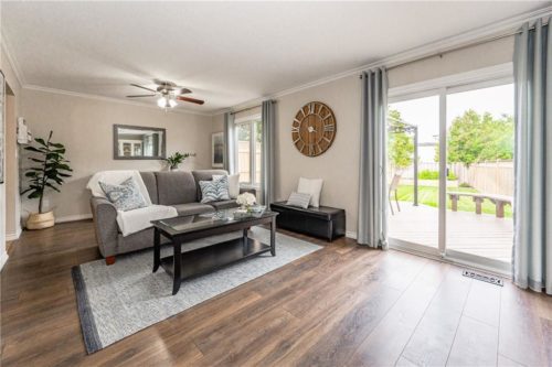 Stunning semi-detached home in Caledonia! Built in 1994, this 1503 square foot (as per MPAC), 3 bedroom, 1.5 bathroom, 2-storey home has received many upgrades over the years and shows extremely well. Features include updated laminate flooring throughout the main level, crown mouldings, a refreshed eat-in kitchen with stainless steel appliances, a spacious & bright living/dining room with sliding doors to the rear deck, a master retreat with a walk-in closet & ensuite privileges leading to a beautifully renovated 4 piece bathroom with granite countertops, hardwood flooring on the bedroom level, a partially finished lower level with an oversized recreation room featuring pot lighting & a custom bar, additional unfinished space in the lower level awaiting your finishing touches (currently set up as a home gym), plenty of storage throughout, a single car garage with inside entry, surfaced parking for 4 additional vehicles, a charming front porch with seating for 2, meticulously maintained landscaping, an in-ground sprinkler system in the front & rear, a gas line at rear for a barbecue, & more. Updates include roof shingles (2014), furnace & central air conditioning (2012). Pride of ownership is evident – you will be very impressed.