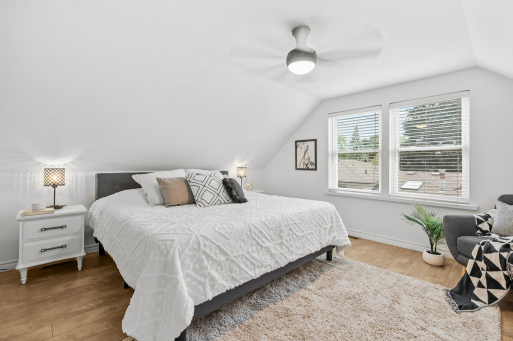 The rear yard is a private oasis, featuring an oversized deck that overlooks the lush, meticulously maintained gardens. Enjoy a combination of interlock and recently updated concrete walkways, a grassy area, a rear shed, and more. This ultra-private yard provides a “cottage-in-the-city” feel, ideal for relaxation and entertaining.