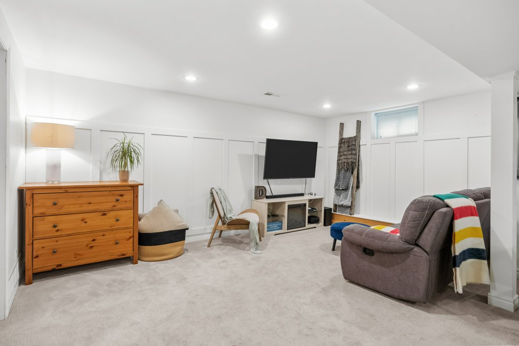 The fully finished lower level is perfect for entertaining, offering a large recreation room with wainscoting and pot lighting, an updated 3-piece bathroom with an oversized glass shower, and storage/utility areas.
