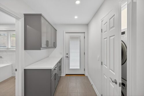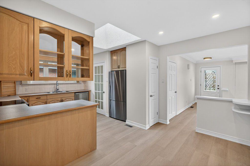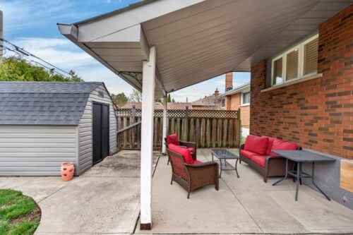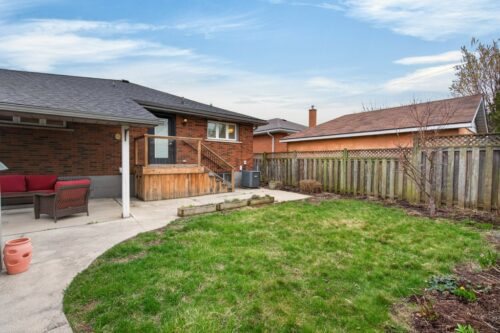 Nestled on a quiet cul-de-sac in the heart of Hamilton’s sought-after Delta neighbourhood, this tastefully updated 2 bedroom, 2 bathroom bungalow offers comfort, convenience, and exceptional versatility. Featuring surfaced parking for 4 vehicles and a single garage with inside entry, this home delivers both function and ease from the moment you arrive. A covered front porch welcomes you into a spacious foyer complete with a convenient storage closet. The inviting living room is filled with natural light from an expansive front window and enhanced with pot lighting, creating a warm and airy atmosphere. The eat-in kitchen offers a charming dinette space, stainless steel appliances, and a skylight that floods the area with natural light. Two generously sized bedrooms feature oversized closets, while the recently renovated 5-piece bathroom is a standout – thoughtfully designed to be wheelchair accessible, complete with a glass shower, double vanity, and an oversized soaker tub. Main level laundry adds everyday convenience. The partially finished lower level expands your living space with a large recreation room, cold room, powder room, utility area, and a second laundry setup. A bonus side entrance provides direct access to both levels, offering excellent in-law or multi-generational living potential. Step outside to a private backyard retreat featuring a large concrete patio with veranda, a rear storage shed, gardens, and green space to enjoy. Additional updates include roof shingles (2021), recently installed flooring, upgraded lighting fixtures, fresh paint throughout & more. Located in the vibrant Delta community, enjoy close proximity to Gage Park, Ottawa Street’s shops and restaurants, schools, transit, and quick highway access. A rare opportunity to own a turnkey bungalow in one of Hamilton’s most established neighbourhoods.