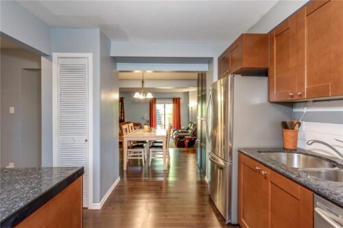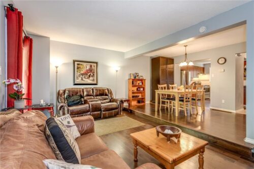Great opportunity – carefree condo living in well-maintained townhome complex! In-law set-up in the lower level! 1360 sq ft (MPAC), 3 bdrm, 3.5 baths. Many updates in 2018, incl kitch (cabinets/counters/backsplash/S/S app), hardwood flrs on the main lvl, refreshed baths, & newer carpeting. Other upd include vinyl windows, elec on breakers, newer ext fencing & more. Other features incl an open-concept main flr lvl, a sunken fam room area w/ sliding doors to rear patio, master bdrm w/ trendy barn-door to closet & bonus 2 pc ensuite, a f-fin lower lvl w/ laund, a 3 pc bath & a private ent to a rec room/kitchenette area. Inside entry from the underground parking – currently spot # 14. Room sizes approximate.