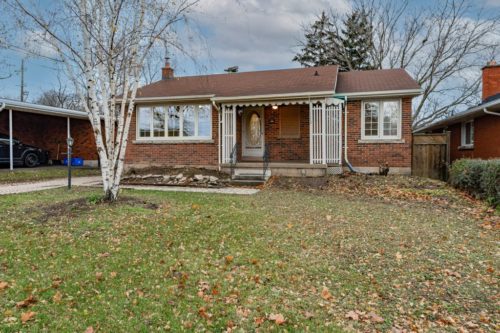 Excellent opportunity in Hamilton’s Buchanan Park neighbourhood – one of the West Mountain’s best areas. Circa 1953, this 3+2 bedroom, 2 bathroom bungalow has plenty of potential and offers many possibilities. Features include an oversized 50′ x 120′ lot, charming front porch, all-brick exterior, interlock driveway/walkways, hardwood flooring throughout the main level, eat-in kitchen, freshly painted in neutral tones, updated light fixtures, some newer windows, side door with direct access to the lower level, a fully-finished lower level with exceptional ceiling height, & more. Same owner since the 1960s. Fantastic location with easy access to parks, schools, shopping, public transportation, major transportation routes, downtown Hamilton & more.