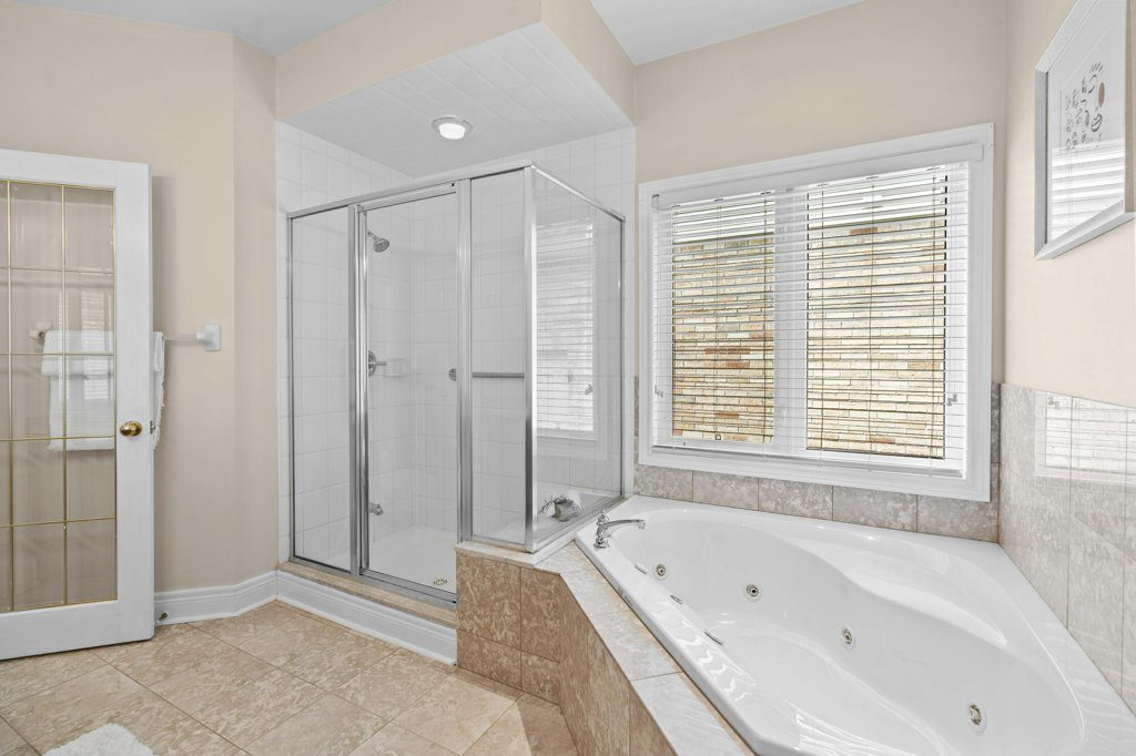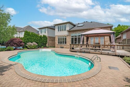 An exceptional, light-filled bungaloft in the heart of Millcroft. This beautifully maintained 3+1 bedroom, 4-bath home offers over 2,283 sq ft of above-grade living with a layout that flows effortlessly. Enjoy morning coffee on the charming front porch before stepping into a spacious foyer with interior garage access and double closet. A bright front bedroom with a walk-in closet is ideal for guests or a home office, with a 4pc bath just off the entry. The main level features hardwood floors and is flooded with natural light. A grand centre staircase anchors the home, while the show-stopping living room boasts soaring two-storey ceilings, expansive windows, a skylight, and a passthrough gas fireplace shared with the serene primary suite. This retreat offers a large walk-in closet and a luxurious 5pc ensuite with double vanity, walk-in shower, and jacuzzi tub. Laundry is privately tucked away off the primary. The kitchen is the heart of the home—conveniently tiled with ample counter space, maple cabinetry, stainless steel appliances, generous storage, and bar seating for four. It flows into the eat-in area and living room, perfect for entertaining or family life. A formal dining room with a statement chandelier adds a touch of elegance. Upstairs, find a flexible loft, currently used as an office, another full 4pc bath, and a spacious bedroom with a deep closet. The fully finished basement offers a large rec room with an electric fireplace, potential 4th bedroom or den, 3pc bath, bar area, and workshop/storage. The backyard is a private, low-maintenance retreat with a wood deck, pergola, manicured gardens, and in-ground chlorine pool. A spacious double-car garage is complemented by a wide asphalt driveway offering two additional parking spaces—plenty of room for guests or multi-vehicle households. Updates include: Roof (2015), Furnace & AC (2024), Pool Pump (2020), Interlock refinished (2025). Move-in ready in Millcroft—one of Burlington’s most desirable neighbourhoods, known for top-rated schools such as Charles R. Beaudoin, parks, golf, shopping, and easy highway access.