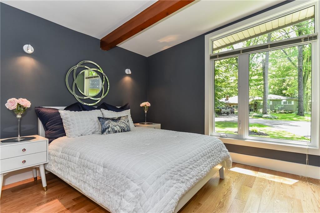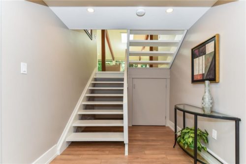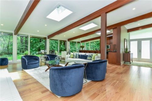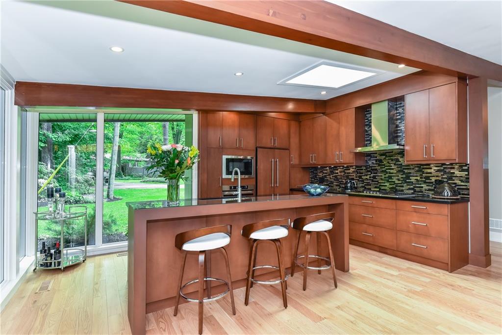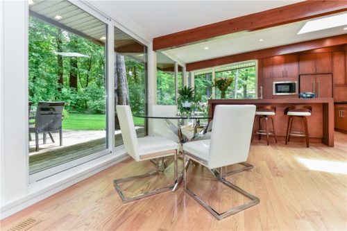 This is your chance to own a one-of-a-kind mid-century modern custom home located on a stunning ravine lot in Ancaster w/ no immediate rear/side neighbours. Built & designed by local renowned architect Stanley Roscoe in 1955, this 3 bedroom, 3 bathroom home offers over 2000 sq ft of finished living space & has been extensively renovated from top to bottom. The home is architecturally impressive on both the exterior & interior, and is situated on a mature 81′ x 119′ lot, surrounded w/ natural beauty & lush greenery, offering outstanding privacy & scenic views. The open-concept main floor features exposed beams, a gently sloping vaulted ceiling with exceptional ceiling height, 3 skylights offering additional natural light, floor-to-ceiling windows overlooking the mature yard, a wood-burning fireplace, hardwood flooring, pot lighting, custom kitchen cabinetry with built-in appliances & a large centre island with seating for 4, a formal dining room & formal living room. The master retreat features an oversized window with beautiful views, with a 4 pc ensuite bath & full walk-in closet. 2 additional bdrms & a 4 pc bath w/ a glass shower enclosure round out the upper level. The lower level is fully finished, offering a family room, a rec room/den, a 3 pc bath w/ a glass shower, & plenty of storage. This home is in a fantastic location with easy access to the 403, the core of Ancaster, schools, parks, shopping, & more. This is truly an unbelievable home that will leave you speechless.