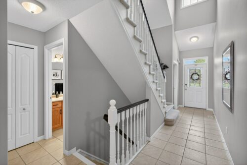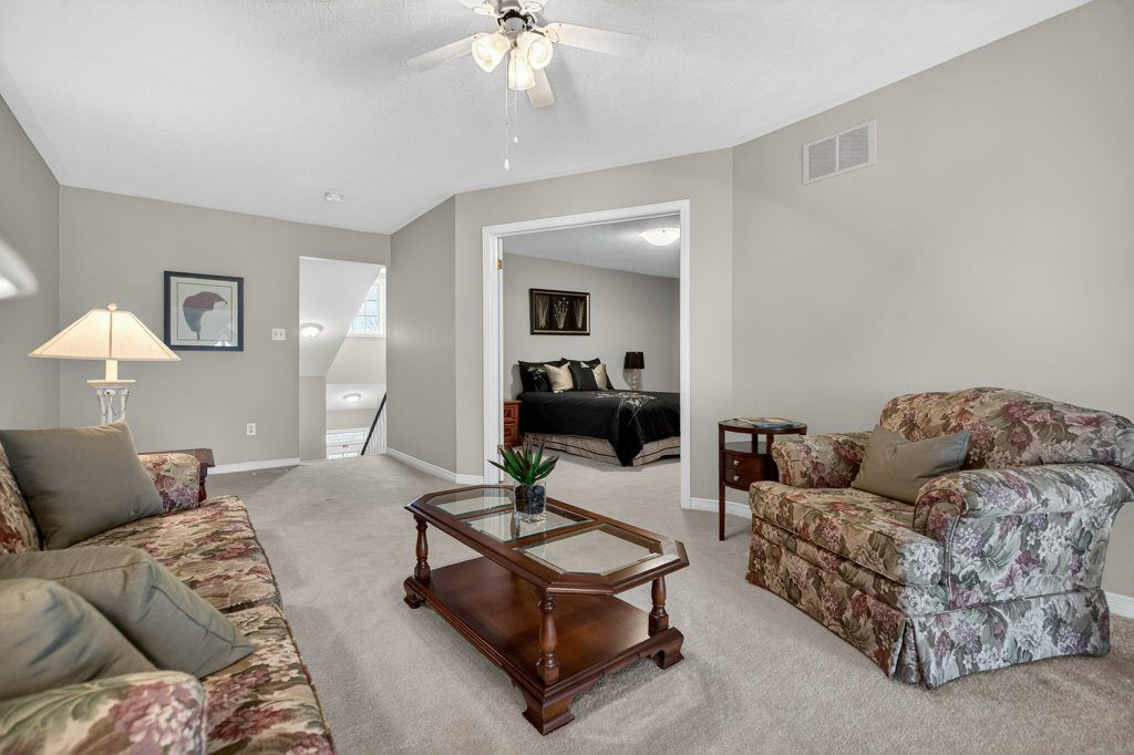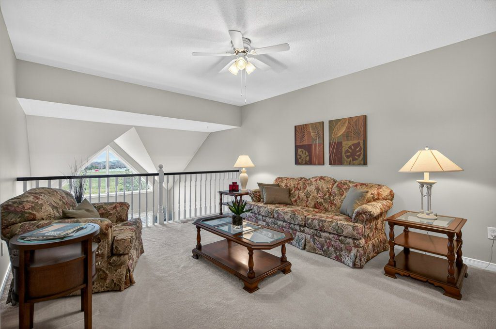 Located in a quiet, well-maintained and highly desirable complex, this 3 bedroom, 2.5 bathroom executive bungaloft offers low-maintenance living in the sought-after Meadowlands community in Ancaster. The attractive exterior showcases timeless stone accents, a charming bay window, a covered front porch, and upper dormer, creating strong curb appeal. The property also features surfaced parking plus a single-car garage with convenient inside entry, ideal for everyday ease. Stepping through the front door (with a bonus phantom screen), a bright and welcoming foyer leads to a thoughtfully designed open-concept layout, featuring a well-appointed kitchen with ample cabinetry & pot lighting. The kitchen flows seamlessly into a spacious dining area and the stunning living room with vaulted ceilings & oversized windows, California shutters, and a cozy corner gas fireplace. Sliding doors lead to a private interlock patio, offering a peaceful outdoor retreat. The main floor is designed for convenient single-level living, featuring a front bedroom with flexibility for guests or a home office, a powder room, main floor laundry, and a well-appointed primary retreat complete with double closets and an updated 3-piece ensuite with an oversized glass walk-in shower and additional storage cabinetry. Upstairs, the open loft provides a versatile multi-purpose space overlooking the main level, perfect for a variety of purposes. A spacious second-level bedroom offers a walk-in closet and a full 4-piece ensuite, making it an ideal secondary primary suite. The basement level features a finished hallway leading to an unspoiled area with a bathroom rough-in, offering excellent potential for future customization. Backing directly onto Meadowlands Community Park with no immediate rear neighbours, this rare offering provides added privacy and a premium setting. Additional highlights include visitor parking, roof shingles replaced approximately 6 years ago, and an updated furnace/central air conditioning. Enjoy the convenience of living just minutes to top-rated schools, shopping centres, restaurants, walking trails, parks, and major highway access – all within the highly sought-after Meadowlands community of Ancaster.