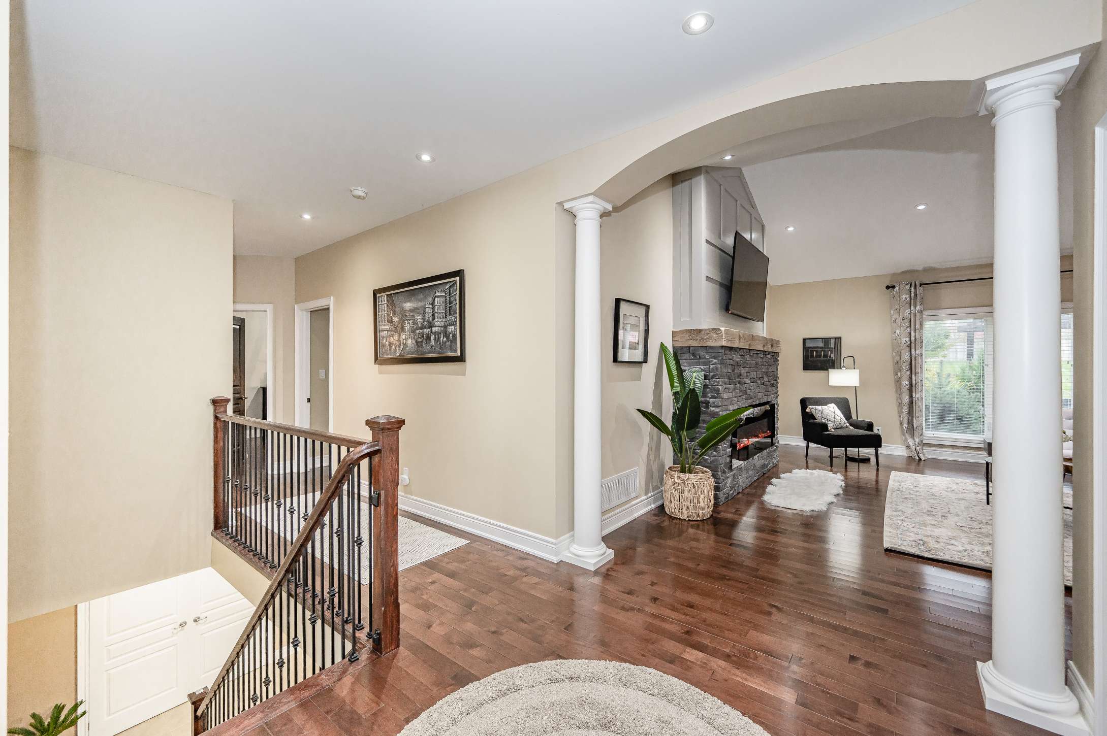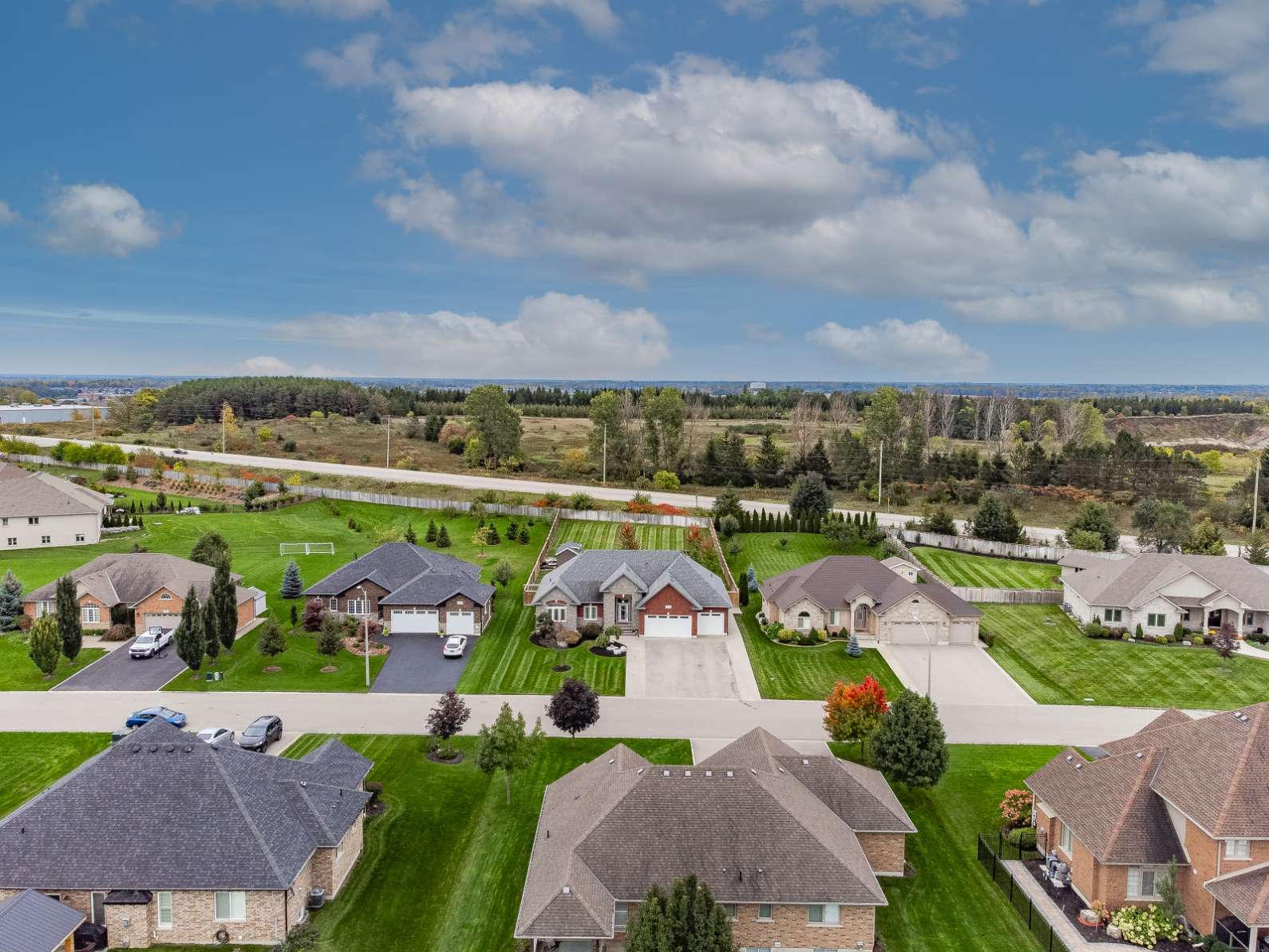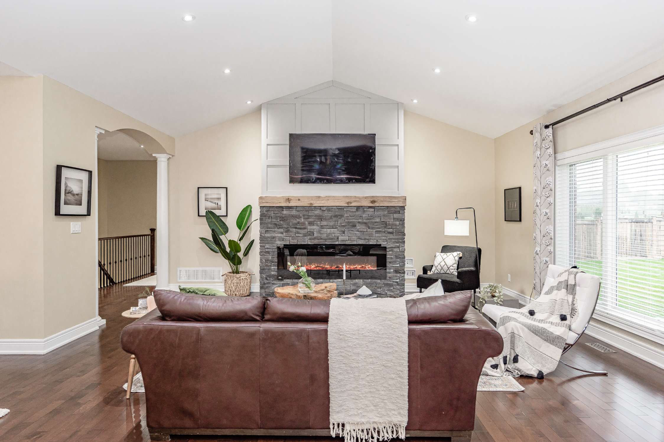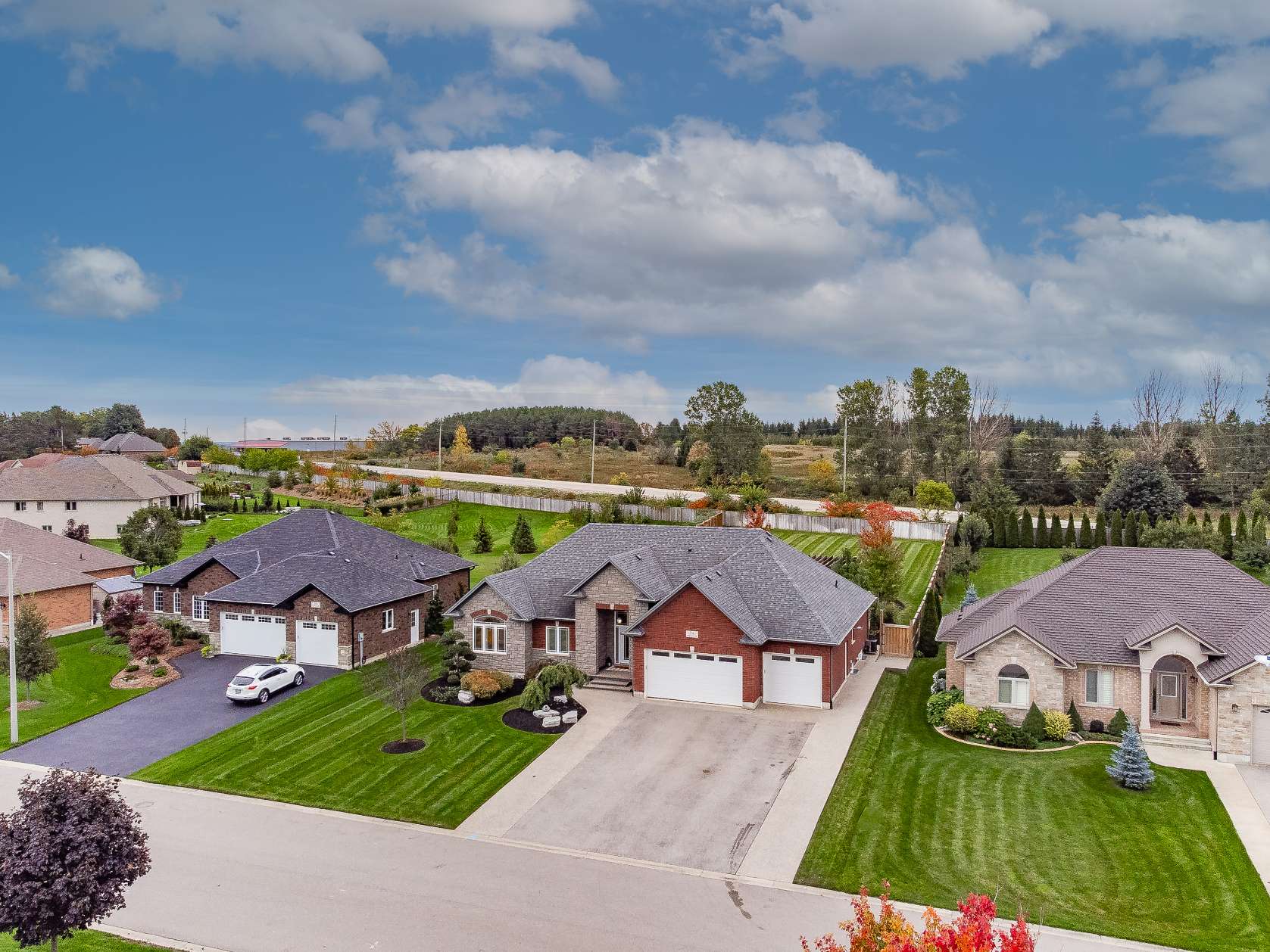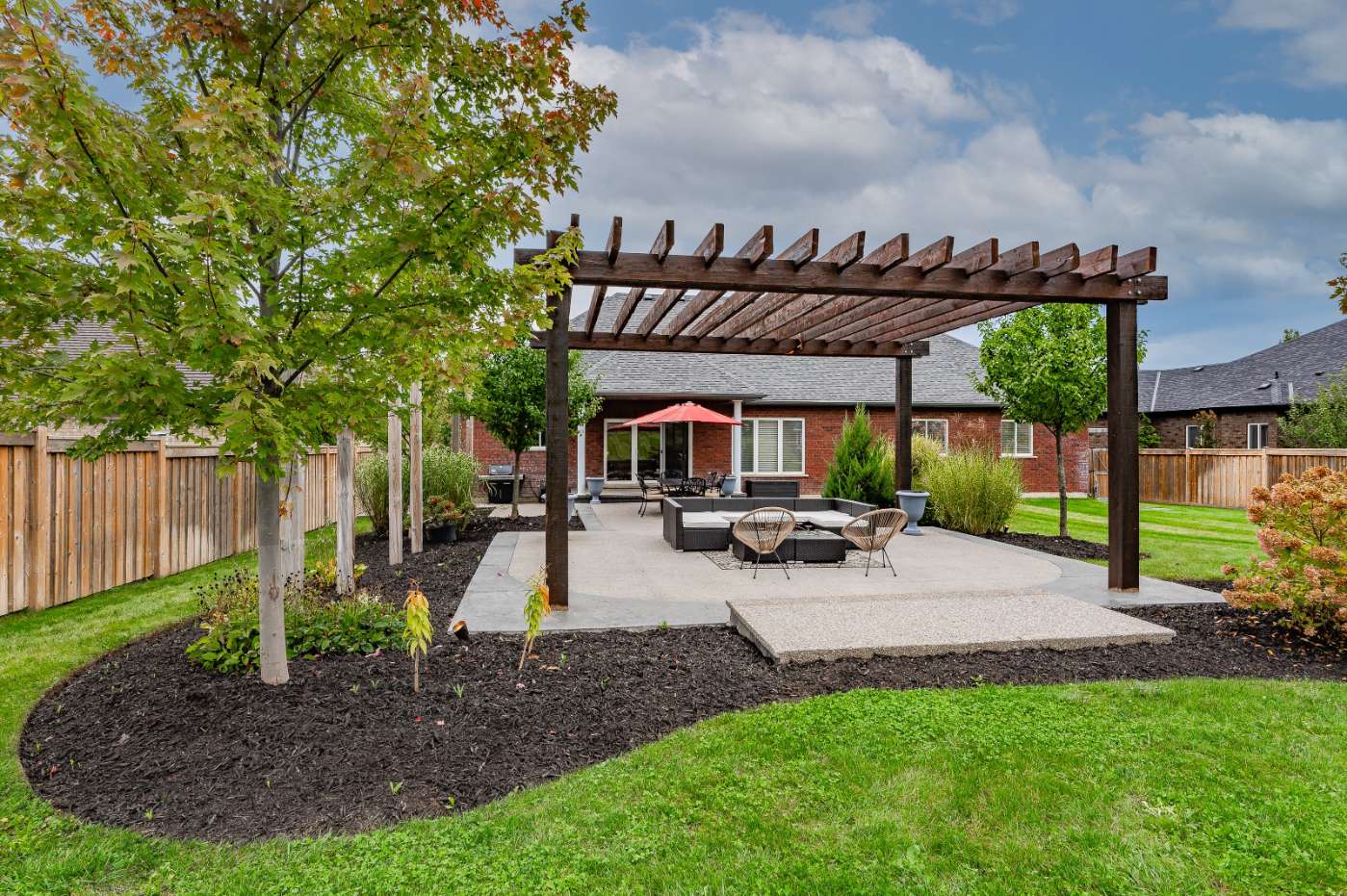 Built in 2011, this elegant 2326 sq ft bungalow offers 4 bdrms, 2.5 baths, a 3 car grg, & is situated on a gorgeous 0.575A lot in one of Brantford’s premier neighbourhoods. Features include a magnificent open-concept living/dining/kitchen space w/ vaulted ceilings, hardwood flooring, crown moulding, wainscotting, pot lighting, an electric fireplace w/ a stacked stone hearth & wood mantle, a spacious kitchen w/ granite countertops/stainless steel appliances/centre island w/ breakfast bar, main floor laundry/mudroom, spacious primary bedroom w/ a walk-in closet & 5 piece ensuite featuring a glass shower & jetted tub, 3 additional bedrooms w/ oversized closets to round out the main level, wood stairs w/ iron spindles leading to the partially drywalled/framed lower level – awaiting your finishing touches, 2 cold cellars & more. You will be impressed w/ the meticulously maintained exterior, featuring an attractive brick/stone exterior facade, asphalt driveway with parking for 6+ vehicles, professional landscaping, a full irrigation system w/ bonus drip irrigation for some larger greenery at the front of the property, covered rear porch, aggregate concrete walkways, stamped concrete walkway borders, oversized pergola, landscape lighting, rear shed, vegetable garden, & more. Bonus 80,000 BTU gas furnace for the garage. An impressive home in a fantastic location w/ easy access to schools, parks, major transportation routes, shopping, Brant Conservation Area, & more.