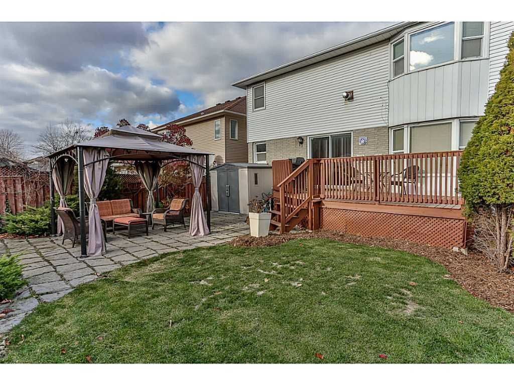 Fantastic 2307 sq ft (MPAC), 3 bdrm, 2.5 bath, 2 storey home w/ fully finished basement in Hamilton’s West Mountain – fantastic location close to bus routes, schools, shopping, and more! Features include 18 foot soaring ceilings, large windows, 2 car garage w/ inside entry, main floor laundry, stainless steel kitchen appliances, formal dining room, sliding doors to rear yard w/ deck and patio area, 3 fireplaces, fully finished lower level with excellent bar area & home theatre, some hardwood, bonus 2nd level family room over garage, master bedroom w/ 5 piece ensuite, pot lighting, rough-in bath in basement, and more! Updates include roof shingles, refreshed kitchen (’14), central air (approx 5 years), and more! Excellent family home with plenty of living space.