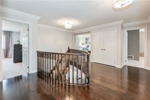 Built in 2010, this 3288 sq ft, 4 bedroom, 3.5 bathroom, 2.5 storey home is in Oakville’s coveted Bronte Creek neighbourhood. Pride of ownership is evident! Feat incl a 2 car grg w/ inside entry, meticulous front landscaping w/ interlock walkways & an asphalt drive for 2 add vehicles, double drs leading to grand foyer w/ soaring ceil to the 2nd lvl, 9′ ceil thru main lvl, main flr office w/ custom built-in desk w/ walnut desktop/filing cab/11′ tall shelv & cab, Cali shutt, custom draperies w/ gorg window cornices thru main lvl (18), formal dining room w/ lux coffered ceil (18), dark hrdwd flrs thru main lvl, a gas FP in the great room, an open-concept flr plan & oversized windows allowing for natural light, a stunning kitch w/ S/S app/granite/custom centre island w/ potent for informal seating, designer light fixtures & pot lights, a winding staircase w/ carpet runner to the second lvl, master retreat w/ large walk-in closet & 5 pc ebth w/ a glass shower & oversized soaker tub, 2 additional 4 pc baths on the bdrm lvl (one is a Jack & Jill), a stunning rear yard w/ interlock patio/prof landscaping/2-tier rear deck/storage shed/gas line for BBQ, 200 amp elec, an unspoiled bsmt w/ oversized windows & bathroom rough-in, & more. Other updates incl 50-yr roof shing (19), main flr 2 pc w/ walnut vanity/quartz, main flr laund w/ custom cabinetry (18), crown mouldings (18), & more. Easy access to Bronte Creek, schools, public transit, shopping, major transportation routes, & more.