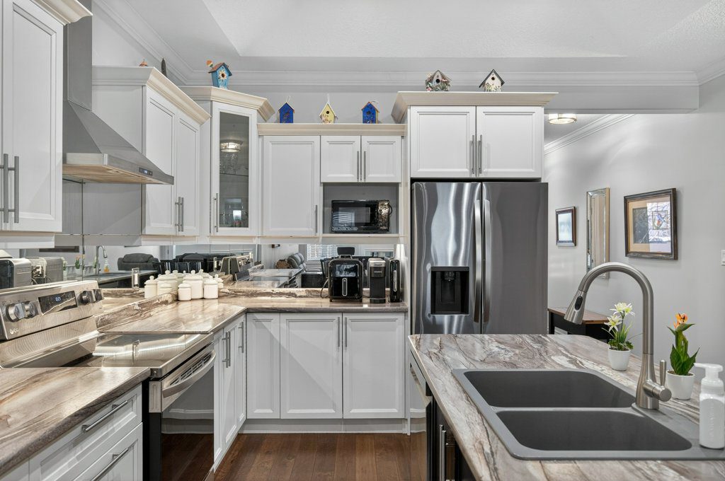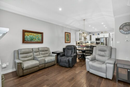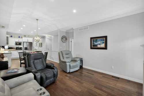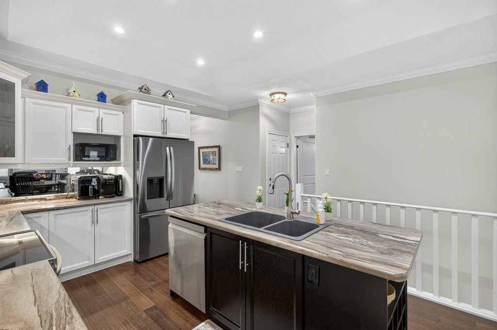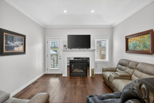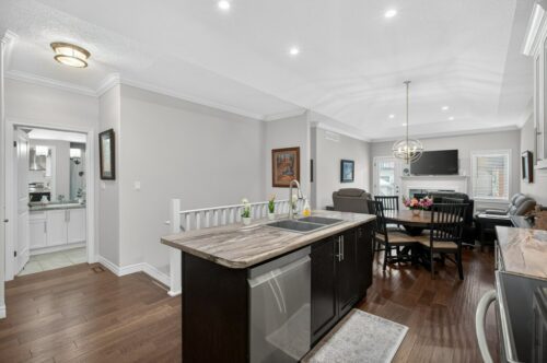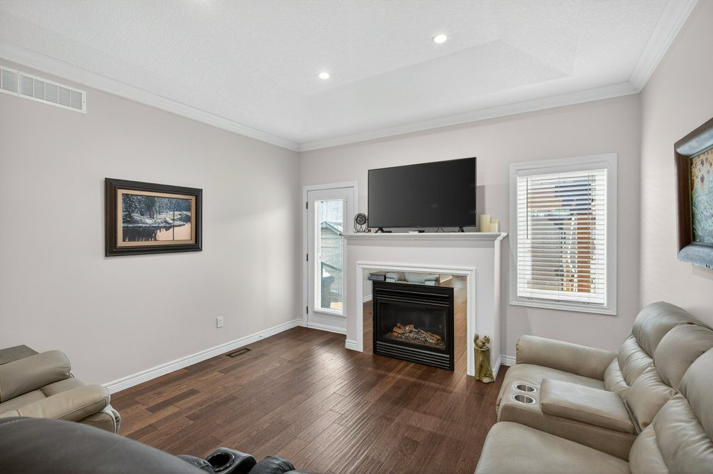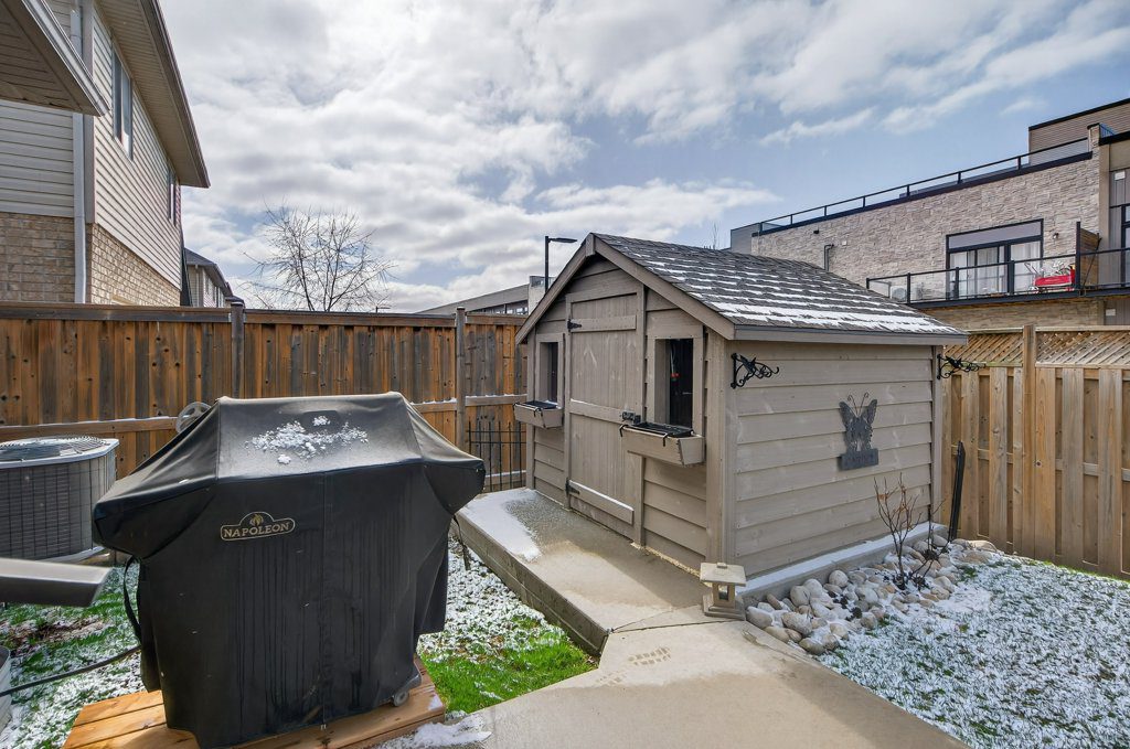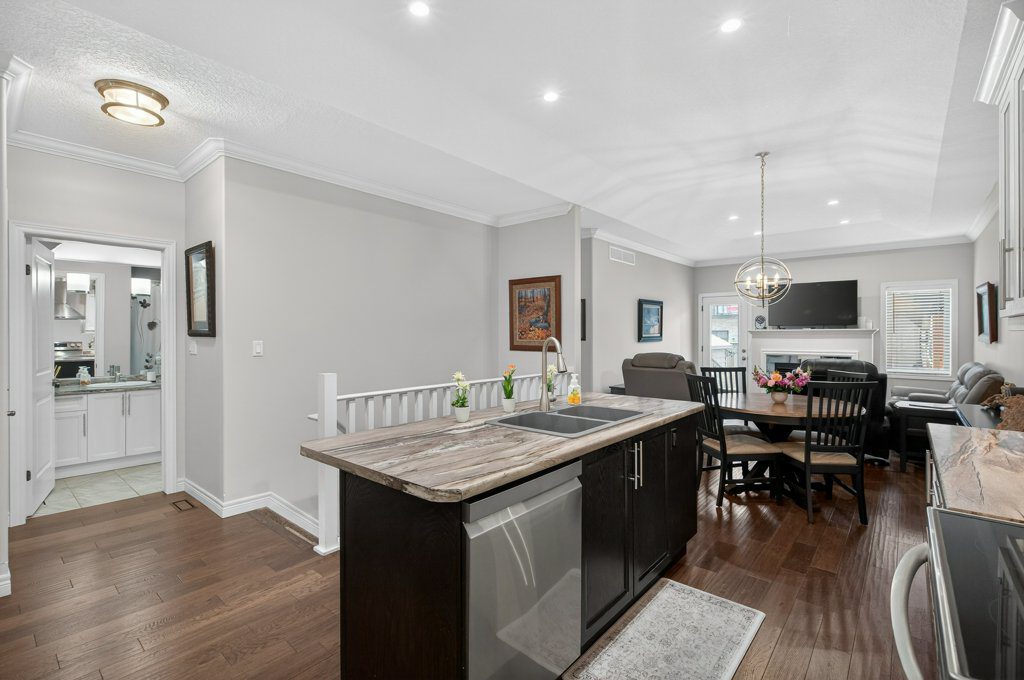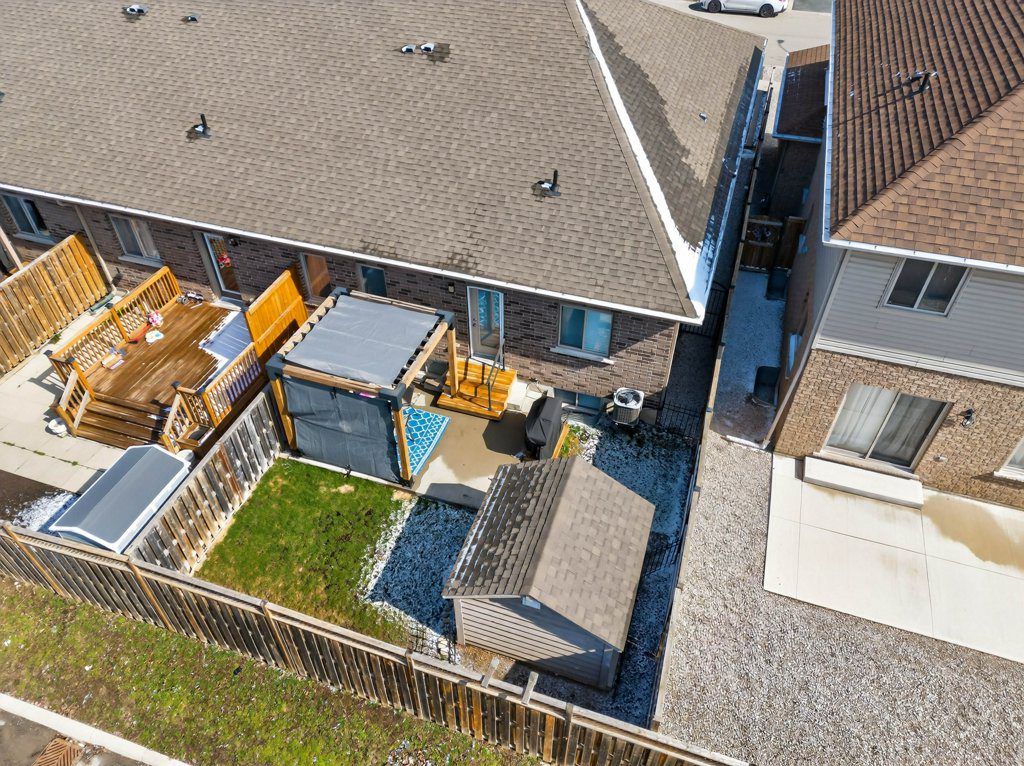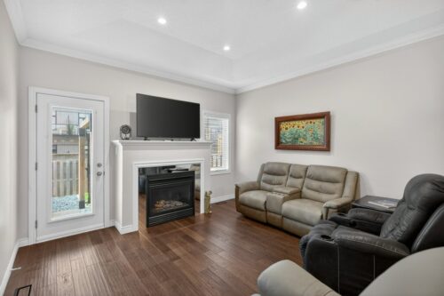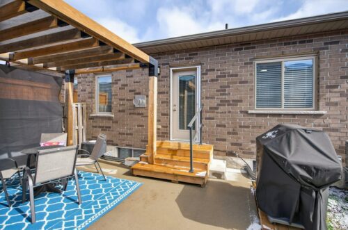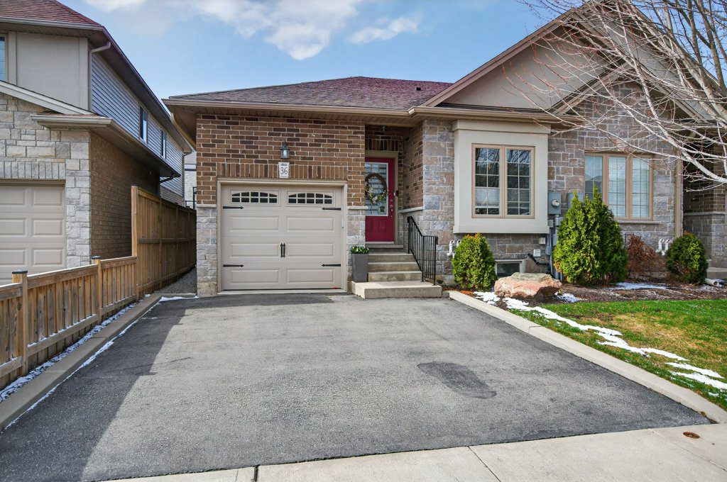 Welcome to 36 Banks Street, a premium end-unit freehold townhome in the vibrant City of Brantford. Beautifully appointed and meticulously maintained, this 2+1 bedroom, 2 bathroom residence offers an exceptional blend of style, comfort, and convenience. From the moment you arrive, the home’s striking facade featuring stone, stucco, and brick creates a lasting first impression, complemented by tasteful landscaping and a covered front porch. A spacious foyer welcomes you inside, complete with an oversized storage closet and a versatile front bedroom currently used as a home office. The heart of the home showcases an open-concept design, anchored by a spacious kitchen with upgraded white cabinetry, mirrored backsplash, stainless steel appliances, including a new LG fridge and dishwasher (2024), undermount lighting, and a centre island with breakfast bar seating. A separate formal dining area flows seamlessly into the large living room, highlighted by an elegant gas fireplace and walkout to the private rear yard. The main level primary retreat offers ensuite privileges to a beautifully finished 4-piece bathroom, along with the convenience of main floor laundry. The fully finished lower level expands your living space with a generous recreation room featuring an electric fireplace, a third bedroom, and a 3-piece bathroom with an oversized glass walk-in shower. Step outside to enjoy a thoughtfully designed backyard complete with a pergola, privacy screens, sunshade, concrete patio, storage shed, and grassy area. Noteworthy upgrades include updated lighting fixtures, LED pot lighting throughout the kitchen, dining, and living areas, garage door, laundry room cabinetry, and fresh paint on the main level. Crown moulding and hardwood flooring add a refined finish throughout. Located in a sought-after Brantford neighbourhood, 36 Banks offers easy access to parks, scenic trails, schools, shopping, and everyday amenities. Commuters will appreciate proximity to Highway 403, while families benefit from a welcoming community atmosphere and nearby recreational facilities. A perfect balance of lifestyle and location.