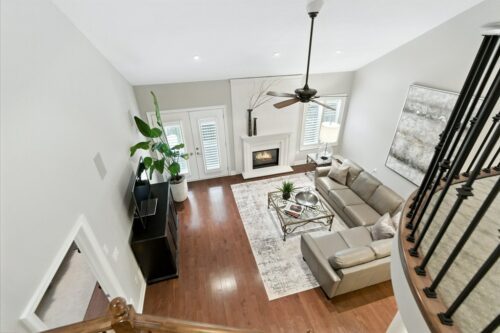 Welcome to The Bungalows of Ancaster South – an exclusive enclave of executive homes tucked away in one of Ancaster’s most desirable locations. Built by Starward Homes in 2012, this immaculate end-unit bungaloft offers 1993 square feet (above grade), 2 spacious bedrooms, 2.5 bathrooms, and the rare advantage of no immediate rear neighbours. A stone entrance and private drive off the main road lead you into this meticulously maintained community. The home’s striking facade of red brick, stone, and stucco is complemented by a double-car garage with inside entry and two additional surface parking spots. Step inside through the elegant front door with a transom window into a foyer that sets the tone for the rest of the home. The formal dining room with crown moulding offers the perfect space for entertaining. The open-concept main level features a bright kitchen with timeless white cabinetry (including bonus dark pantry cabinetry), granite countertops, stainless steel appliances, undermount lighting, and breakfast bar seating for 3+. A dinette sits off to the side, framed by graceful circular columns. The living room impresses with vaulted ceilings, a gas fireplace with a cast stone surround & associated mantel, and French doors leading to an oversized raised deck – complete with Sunbrella awning for added shade. The main floor primary retreat includes crown moulding, a 4-piece spa-like ensuite with corner glass shower, soaker tub, granite vanity, and a walk-in closet. The main-level mudroom/laundry and powder room add convenience. Upstairs, the loft space overlooks the living room and is perfect as a home office, den, or other multi-purpose space. A large second bedroom with a bonus reading nook and a 3-piece bath completes the upper level. Additional features: hardwood floors, California shutters, rounded drywall corners, elegant lighting, fresh paint, central vac, updated furnace & central air conditioning (2021), and an unspoiled basement with two oversized windows and a bathroom rough-in. Enjoy low-maintenance living with condo fees covering building insurance, exterior maintenance, parking, and access to common elements. Just minutes to parks, shopping, restaurants, golf, highway access, and top schools, this community offers upscale suburban living with unbeatable amenities and walkability.