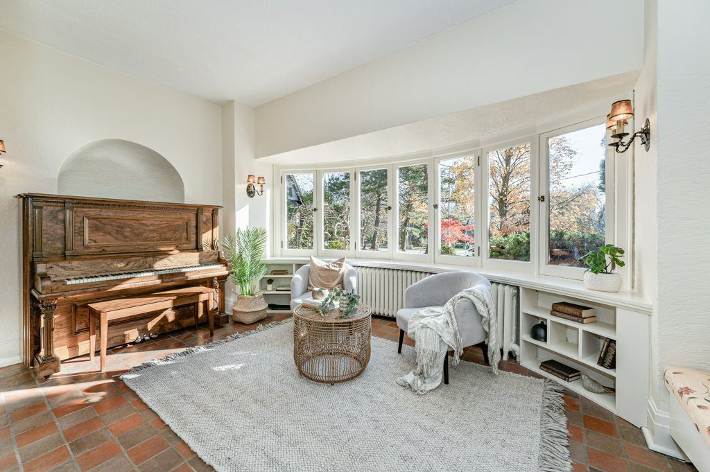 Located on an exclusive crescent within Toronto’s coveted Lawrence Park neighbourhood, this elegant home is situated on a mature 104.99′ x 154.95′ irregular shaped lot & is loaded with original character & charm that will be sure to impress. At 3097 square feet, this stately residence with high ceilings features a traditional centre-hall plan with 6 bedrooms & 3.5 bathrooms sprawling over 2.5 storeys of living space. The main level features a spacious foyer, a formal living room featuring quality hardwood flooring, original trim/baseboards/crown mouldings, a wood burning fireplace with a stone fire surround/wood mantle, & two sets of French doors leading to the charming front sunroom with an expansive bow window & built-in cabinetry/bench seating. The formal dining room features hardwood flooring, additional original millwork, crown mouldings, & and a beautiful chandelier. The tasteful eat-in kitchen features timeless white cabinetry, white appliances, a dinette area & a rear door leading to the rear terrace/yard. A convenient main floor powder room rounds out the main level. The 2nd level features an expansive family room with built-in cabinetry & stained glass windows, a primary retreat with a 4 piece ensuite bathroom & 3 storage closets, 3 additional spacious bedrooms (one of which was previously utilized as a den), an additional full bathroom & a convenient laundry chute. The 3rd level offers 2 additional bedrooms & a 3 piece bathroom with a claw foot tub. On the exterior, there is a large mature perennial garden to relax in surrounded by lush greenery that emotes a feeling of peace & tranquility. The winding driveway offers surfaced parking for multiple vehicles & leads to the fully fenced rear yard, featuring a rare double garage & hardscaped terrace. Updates include electrical on breakers (200 amp), boiler (2018), broadloom (2022), a freshly painted interior in neutral tones, & more. This magnificent home is on a low-traffic street & has many charming architectural features throughout, including large windows providing plenty of natural light, coved ceilings, dormers, beautiful millwork, built-in shelving/cabinetry, sconce lighting & more. Exceptional location in a fantastic neighbourhood offering a quiet lifestyle for those looking to escape the hustle of Downtown Toronto, with the convenience of extremely easy access to the shops & restaurants along Yonge Street, public transit (approximately a 5 minute walk to the TTC), parks, playgrounds, top education facilities, major transportation routes & more.