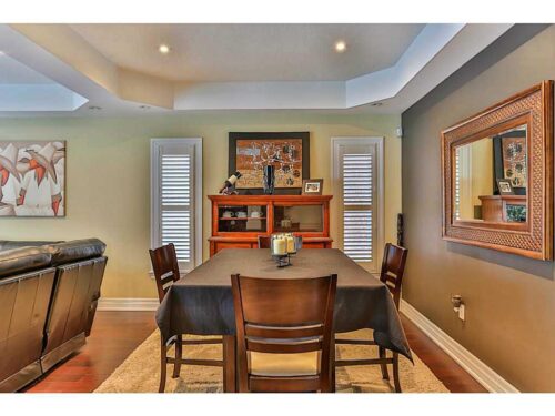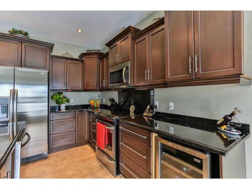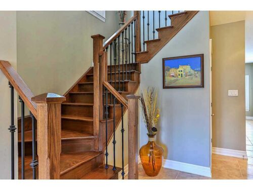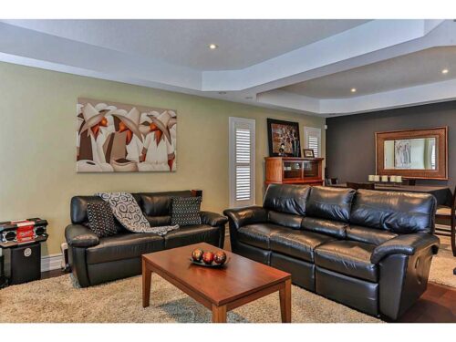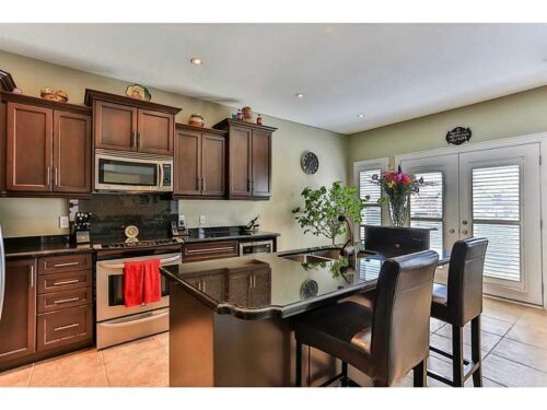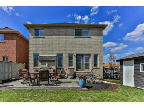 Gorgeous 3 bedroom, 3.5 bath 2 storey home in excellent central mountain location. This one is loaded – finished top to bottom! Stone/stucco/brick exterior finish, tasteful landscaping including stamped concrete driveway/front steps/walkway/rear patio, recent rear shed (2014), irrigation system (with rain sensor), iron fence along side of property and more. Step through the front door and be wow’d. Dark hardwood flooring, columns, eat-in kitchen with granite & stainless steel appliances (all included), french doors to rear yard, gas fireplace, pot lighting. Wood stairs with wrought iron spindles lead to the bedroom level with 3 spacious bedrooms, master bedroom with 2 walk-in closets and 5 pc ensuite, bedroom level laundry, and an additional 5 pc bathroom. The lower level is fully finished with a spacious rec room, bar/entertaining area, 3 pc bath, shoe closet and more. Built-in speakers on main level and basement level. Granite in every bathroom. California shutters and upgraded trim/baseboards throughout the home. The finishes in this home are superb and will not disappoint.