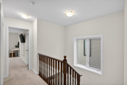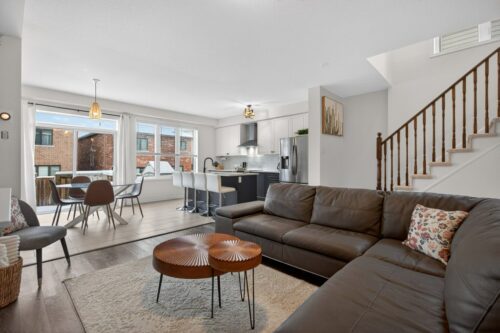 Welcome to this beautifully maintained 3-bedroom, 2.5-bathroom detached home in Caledonia’s desirable Avalon neighbourhood – an ideal blend of comfort, style, and small-town charm. Offering 1581 square feet above grade, this home is thoughtfully designed for modern living while maintaining a warm, inviting feel throughout. Curb appeal is immediate, with surfaced parking for one vehicle and a covered front porch that sets the tone. Elegant French doors with a bonus transom window flood the interior with natural light, opening into a spacious and welcoming foyer. The single-car garage features convenient inside entry, adding everyday practicality. The open-concept main level is perfectly suited for both daily living and entertaining. The living room is anchored by a stylish feature wall, while the dining area offers sliding doors to the rear yard with an additional transom window, creating a bright and airy atmosphere. The functional kitchen is a standout, featuring stainless steel appliances, an attractive tiled backsplash, quartz countertops, and a large centre island with seating for four. An oversized window overlooks the rear yard, bringing in abundant natural light. A convenient main-level powder room completes the space. Upstairs, the spacious primary retreat features a walk-in closet & a 4-piece ensuite with an oversized soaker tub and separate shower stall. Two additional generous bedrooms, a full 4-piece bathroom, and convenient bedroom-level laundry provide comfort and efficiency for busy households. The unspoiled basement, highlighted by large windows, presents endless potential. Outside, the fully fenced rear yard includes a storage shed and plenty of room to relax or entertain. Noteworthy updates include central air conditioning, quartz countertops, some flooring, range hood (all in 2020), feature walls (2024), fresh neutral paint (2025), and updated lighting fixtures. The Avalon neighbourhood is one of Caledonia’s most desirable areas, known for its family-friendly streets, nearby parks, and sense of community. Enjoy the charm of Caledonia’s local shops, cafés, and the scenic Grand River, all while benefiting from easy access to Hamilton, major commuter routes, and everyday amenities. This is small-town living with big-city convenience – an exceptional place to call home.