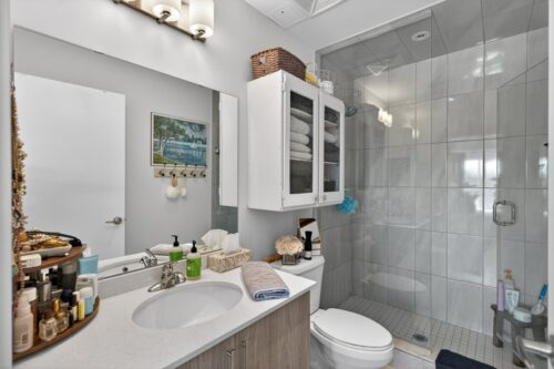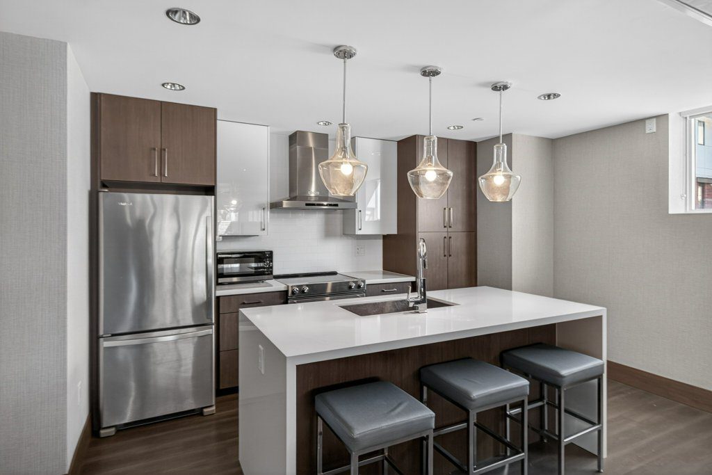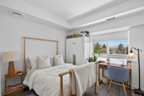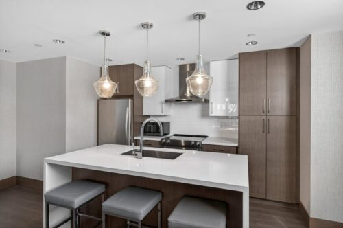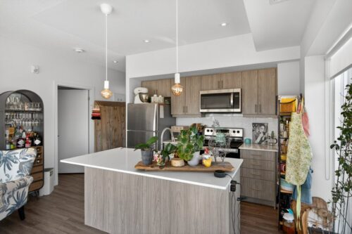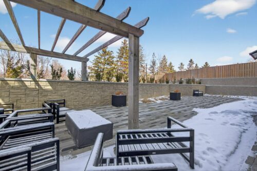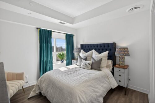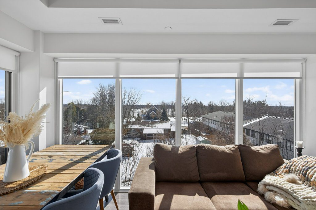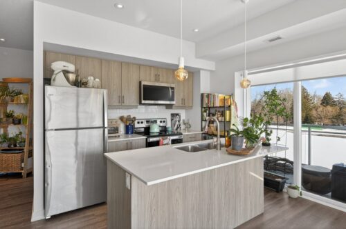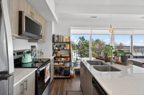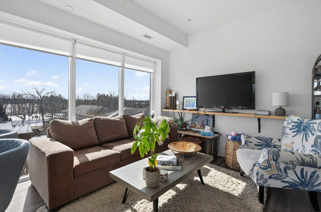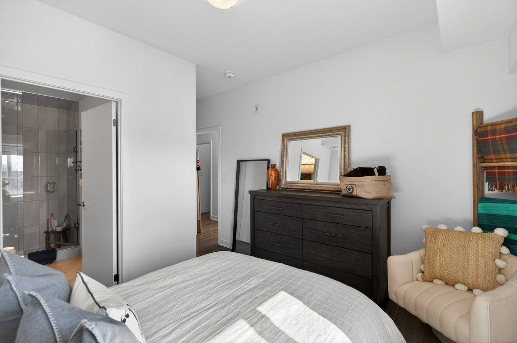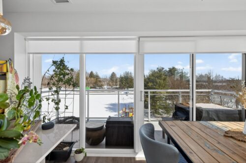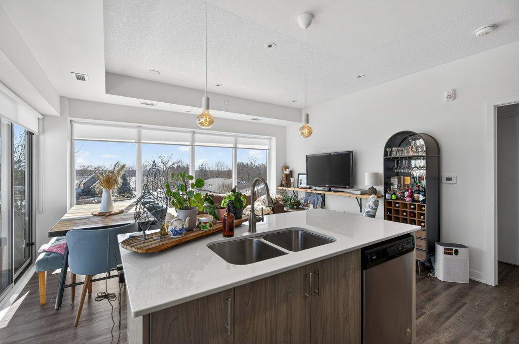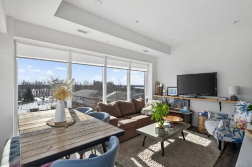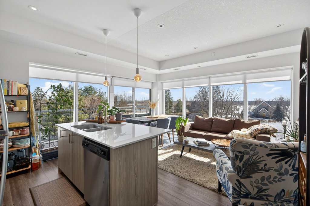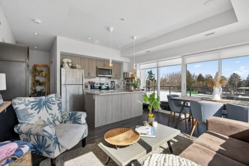 Welcome to the pinnacle of contemporary condo living in Ancaster’s prestigious Monterey Heights at 16 Markle Crescent. This 2 bdrm, 2 bath penthouse corner suite offers 857 sq ft of refined living space, thoughtfully designed w/ an open-concept layout that maximizes light, flow, & functionality. The kitch is both stylish & practical, feat S/S app, an attractive tiled backsplash, striking pendant lighting, & a generous centre island w/ seating for 3+ – perfect for casual dining or entertaining. The space seamlessly connects to a formal din area w/ sliding doors that lead to a private covered balcony, creating an effortless indoor-outdoor lifestyle. The form liv rm is framed by dramatic flr-to-ceil windows, flooding the suite w/ natural light & showcasing elevated penthouse views. The primary retreat offers comfort and privacy, complete w/ a 3-pc ensuite w/ an oversized glass shower. A well-proportioned 2nd bdrm & a full 4-pc bath w/ a shower/tub combo provide flex for guests, family, or a home office. In-suite laund adds convenience. This suite also includes 1 underground parking space & a dedicated storage locker (#9). Monterey Heights delivers exceptional amenities designed for modern living, incl a well-equipped fitness centre w/ cardio/strength equip, a yoga/stretch area, & an elegant party lounge w/ a chef-inspired kitchen. The outdoor terrace features multi seating areas – ideal for gathering w/ friends or relaxing on warm summer evenings. Secure entry, underground parking, & meticulously maintained common areas enhance peace of mind. Situated in a convenient location, this address places you steps to shopping, restaurants, groceries, & everyday essentials. Quick access to Highway 403 ensures effortless commuting, while nearby parks, trails, golf courses, & top-rated schools complete the offering. Penthouse living, premium amenities, & an unbeatable Ancaster location – a rare opportunity to enjoy carefree luxury in one of the area’s most sought-after buildings.