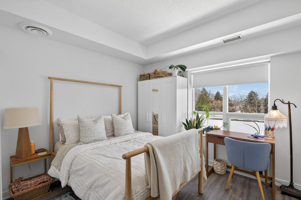Welcome to the pinnacle of contemporary condo living in Ancaster’s prestigious Monterey Heights at 16 Markle Crescent. This 2 bedroom, 2 bathroom penthouse corner suite offers 857 square feet of refined living space, thoughtfully designed with an open-concept layout that maximizes light, flow, and functionality. The kitchen is both stylish and practical, featuring stainless steel appliances, an attractive tiled backsplash, striking pendant lighting, and a generous centre island with seating for 3+ – perfect for casual dining or entertaining. The space seamlessly connects to a formal dining area with sliding doors that lead to a private covered balcony, creating an effortless indoor-outdoor lifestyle. The formal living room is framed by dramatic floor-to-ceiling windows, flooding the suite with natural light and showcasing elevated penthouse views. The primary retreat offers comfort and privacy, complete with a 3-piece ensuite highlighted by an oversized glass shower. A well-proportioned second bedroom and a full 4-piece bathroom with a shower/tub combination provide flexibility for guests, family, or a home office. In-suite laundry adds everyday convenience. This suite also includes one underground parking space (#9) and a dedicated storage locker (9). Monterey Heights delivers an exceptional amenity package designed for modern living. Residents enjoy a well-equipped fitness centre with cardio and strength equipment, a yoga/stretch area, and an elegant party lounge with a chef-inspired kitchen that opens onto a beautifully landscaped courtyard. The outdoor terrace features multiple seating areas – ideal for gathering with friends or relaxing on warm summer evenings. Secure entry, underground parking, and meticulously maintained common areas enhance peace of mind. Situated in a convenient location, this address places you steps to shopping, restaurants, groceries, and everyday essentials. Quick access to Highway 403 and the Lincoln Alexander Parkway ensures effortless commuting, while nearby parks, trails, golf courses, and top-rated schools complete the lifestyle offering. Penthouse living, premium amenities, and an unbeatable Ancaster location – a rare opportunity to enjoy carefree luxury in one of the community’s most sought-after buildings.