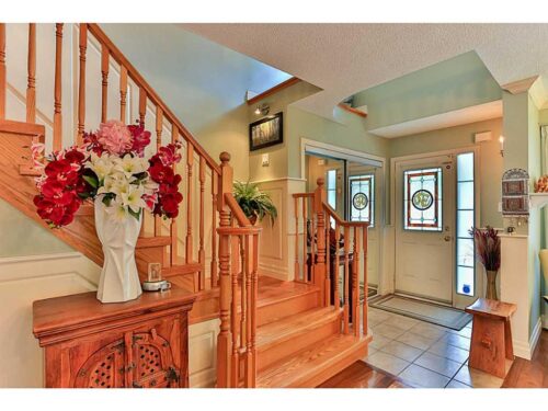 Mattamy built ‘Royale’ model – 1890 square foot (as per MPAC), 3 bedroom, 2.5 bath home on gorgeous ravine lot in Burlington’s popular Orchard neighbourhood. Tasteful landscaping. Interlock front drive. Interior features include hardwood on both levels, updated kitchen cabinetry with S/S appliances/modern backsplash/pot lighting/stone countertops (2014), gorgeous woodwork throughout including crown mouldings & wainscotting, 3-sided gas fireplace, built-in cabinetry in family room, updated powder room, solid wood stairs leading to the bedroom level, spacious bedrooms, french doors to master retreat w/ 4 pc ensuite and walk-in closet, & more. The rear yard has an oversized cedar deck overlooking a lush ravine – privacy plus. Other updates to mention include furnace/central air (2014), & roof shingles (2015). This home has been maintained very well over the years – pride of ownership is evident.
