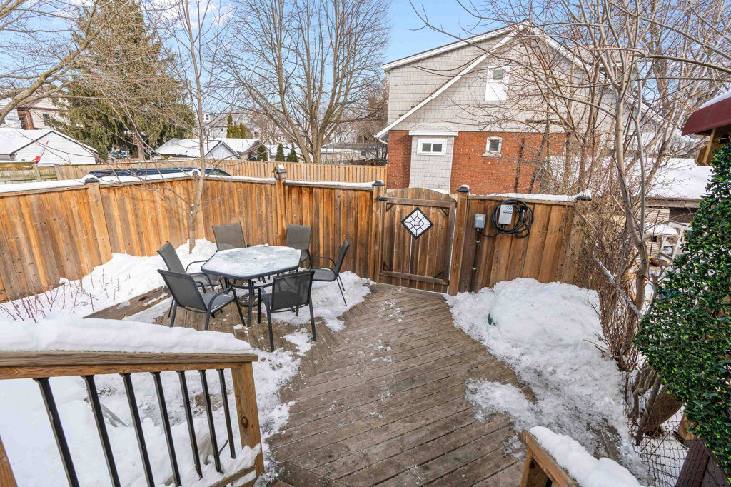 Nestled in the heart of Hamilton’s highly sought-after Kirkendall neighbourhood, this charming 3-bedroom, 1-bathroom, 2-storey home perfectly blends timeless character with modern upgrades. From the moment you arrive, the inviting expansive front porch sets the tone, offering a welcoming space to enjoy morning coffee or unwind in the evening. Step inside to a bright foyer with a convenient storage closet before entering the stunning open-concept living and dining area, where gleaming hardwood flooring, cove ceilings, and an ornamental fireplace create a warm and elegant ambiance. The living room boasts charming sconce lighting and a large front window, flooding the space with natural light. The adjacent dining area is ideal for hosting, seamlessly leading into the showstopping renovated kitchen (2018). Featuring white cabinetry, quartz countertops, stylish herringbone flooring, stainless steel appliances, a modern backsplash, an undermount sink, panelled dishwasher, bench seating, and a built-in wine rack, this kitchen perfectly balances function and style. An exterior door provides easy access to the private backyard oasis, complete with a multi-tier deck, leading to a fully fenced yard and rear parking for two vehicles via the rear alley. Upstairs, the spacious primary bedroom boasts an oversized closet, while two additional bedrooms offer flexibility for family, guests, or a home office. The updated 4-piece bathroom (2016) showcases a shower/tub combination with a built-in niche for added convenience. A rare bonus—the second level features an exterior door leading to a flat roof space, presenting endless possibilities. The unspoiled lower level offers laundry facilities and ample storage space. Thoughtful upgrades include flat roof replacement over the rear of the home (2017), a home energy audit (in 2018 – leading the current owners to increase attic insulation, replace multiple windows & the second level exterior door – all in 2018), some wiring (2018), rear deck (2019), sump pump (2020), radon testing (2023, clear results), new electrical panel (2024), exterior brick repointing (2024), backflow valve (2024), and main sewer line replacement (2025). Enjoy an incredible lifestyle location just steps from Locke Street’s vibrant shops & restaurants, parks, schools, public transit, McMaster University, Mohawk College, Chedoke Golf Club, and more. With its blend of character, modern updates, and unbeatable location, this Kirkendall gem is a rare opportunity not to be missed.