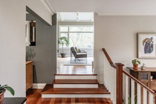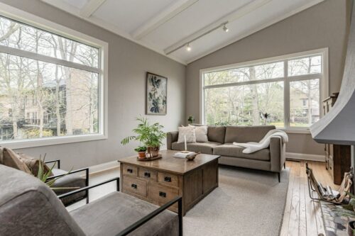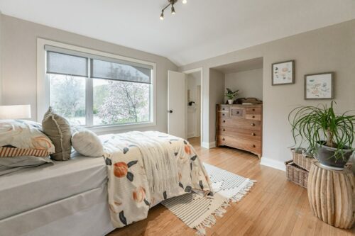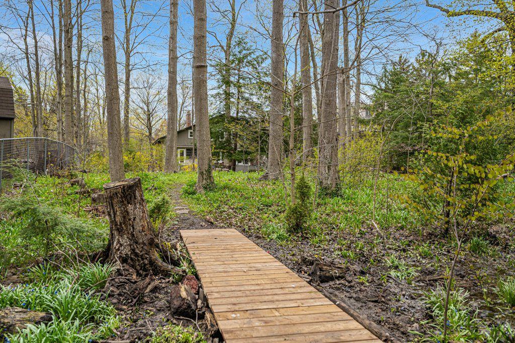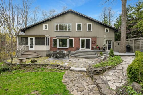Rare opp in Dundas’ Cross-Melville Heritage District. Built in ’54, this Swiss-inspired mid-century modern 2-stry home is situated on a stunning 85′ x 340′ lot (0.66A) w/ diverse topography ranging from majestic woodlands, a stream & a walking path wandering through lush greenery home to many native plant species. Feat incl a reno’d front-facade ext offering a combo of composite finishes, stone, & steel, prof landscaping w/ flagstone & interlock, formal liv rm w/ wood burning FP w/ gorg bell-curved canopy, cault ceil w/ exposed beams & an authentic Indian wood-carved door art piece (incl), open-concept flr plan w/ oversized windows overlooking the prop, updated kitchen w/ maple cab, S/S app, granite, butlers servery, combo of Brazilian & orig oak hardwood, crown moulding, built-in sound sys, magical 3-season sun lounge feat composite decking, roll-up screens, & an arched doorway leading to a Juliette balcony overlooking the creek, spacious primary suite w/ 2 walk-ins, 2 add bdrms w/ passageways to walk-in closets, 6 pc bath feat a glass shower, soaker tub, & heated flrs, a f-fin lower lvl w/ bsmt walk-out, great rm w/ gas FP, 4th bdrm, 3 pc bath, rec rm & laundry. Oversized 27.5′ x 10.3′ grg, multi outdoor liv spaces, flagstone rear terraces, a rear storage shed, & more. Other upgrades incl windows (’08 & ’16), 200 A elec, furn (’21), & more. Fantastic location w/ an abundance of privacy while just steps to the Dundas Driving Park & a short stroll to the charming downtown core.