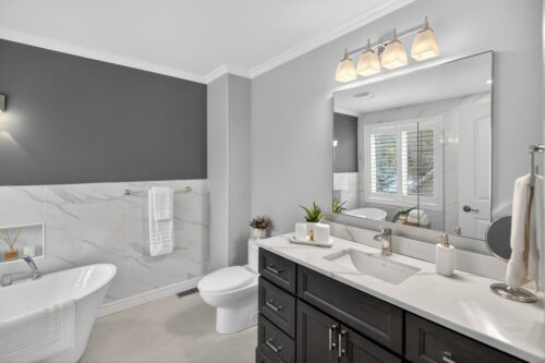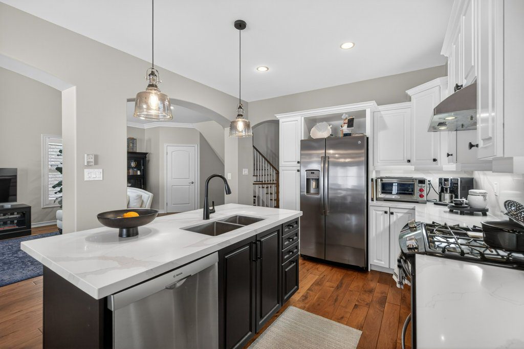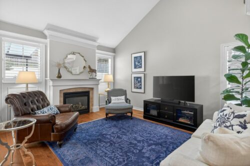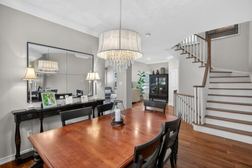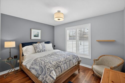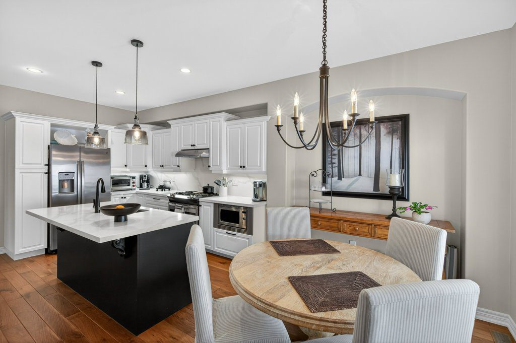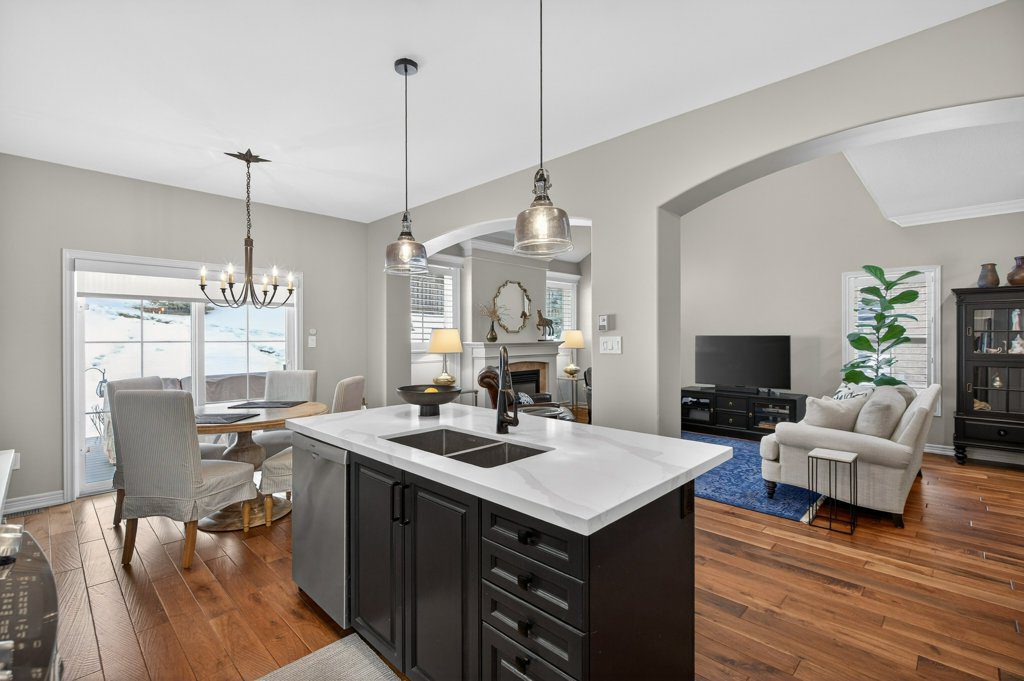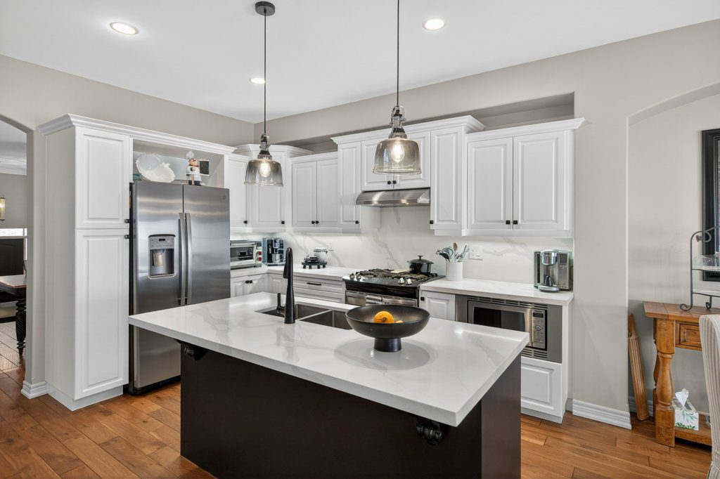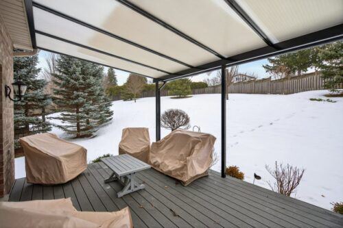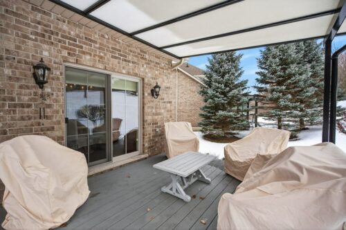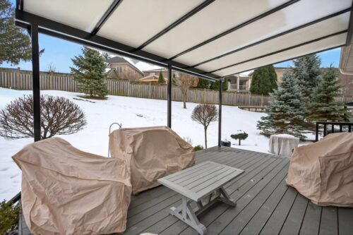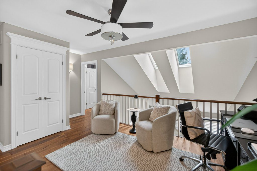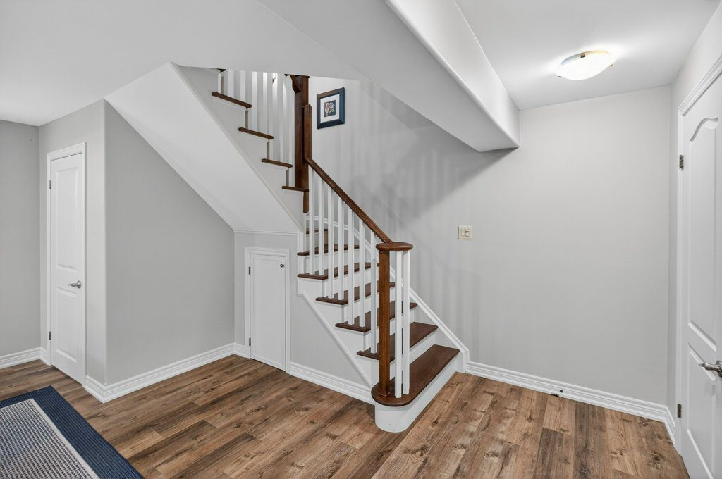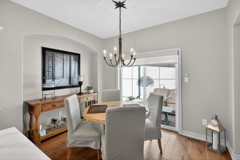 Set within one of Dundas’ most exclusive enclaves in Pleasant Valley, this exceptional executive residence by award-winning Schuit Homes offers an uncompromising blend of craftsmanship, privacy, and refined living. Positioned at the rear of the complex – highly desirable for its added privacy – this home makes an immediate impression with its striking façade blending stone & brick, complemented by a distinctive bell-shaped roof, pot lighting, and tasteful shutters. A covered front porch invites you to relax, while the double-car garage with inside entry, additional surfaced parking for two, and bonus visitor parking ensure convenience for both homeowners and guests. Step through the front door, beautifully framed by sidelights and a transom window, into an impressive foyer with soaring ceilings and a convenient storage closet. Just a few steps up, the main level unfolds into a refined open-concept living space enhanced by rich hardwood flooring and crown moulding throughout. At the heart of the home, the elegant kitchen showcases white cabinetry with crown detail, quartz countertops and backsplash, stainless steel appliances, and a centre island with breakfast bar seating for three or more. It flows effortlessly into the bright dinette area, where sliding doors overlook the rear yard, creating an ideal setting for everyday living. The adjoining living room is both inviting and dramatic, highlighted by vaulted ceilings, two skylights that flood the space with natural light, and a cozy gas fireplace. A separate formal dining room provides the perfect backdrop for hosting family dinners and special occasions. Completing the level are main floor laundry facilities and a well-appointed powder room, offering both comfort and convenience. Ascending the beautiful piano-style wood staircase to the 2nd level, the loft – currently used as a home office – overlooks the living room below. The primary retreat features exquisite wall moulding, two storage closets, and a spa-inspired 4-piece ensuite with an oversized glass shower, separate soaker tub, and quartz vanity. The second bedroom enjoys its own private 3-piece ensuite with an oversized glass shower. The fully finished basement offers a spacious recreation room with a corner gas fireplace, a bonus flex space, a 2-piece bathroom, and multiple storage and utility areas. The rear yard is designed for exceptional outdoor living, featuring an oversized composite deck with a patio cover for protection from the elements, a separate terrace area for additional seating or dining, and picturesque scenic views in every direction. Living in Pleasant Valley means enjoying Dundas’ natural beauty, scenic conservation areas, & walking trails, all while being minutes to the charming downtown core filled with boutique shops, cafés, restaurants, and community events. Quiet streets, mature surroundings, and easy access to major routes create the perfect balance of tranquillity and convenience. Opportunities in this sought-after enclave are rare – an exceptional home in an extraordinary setting.