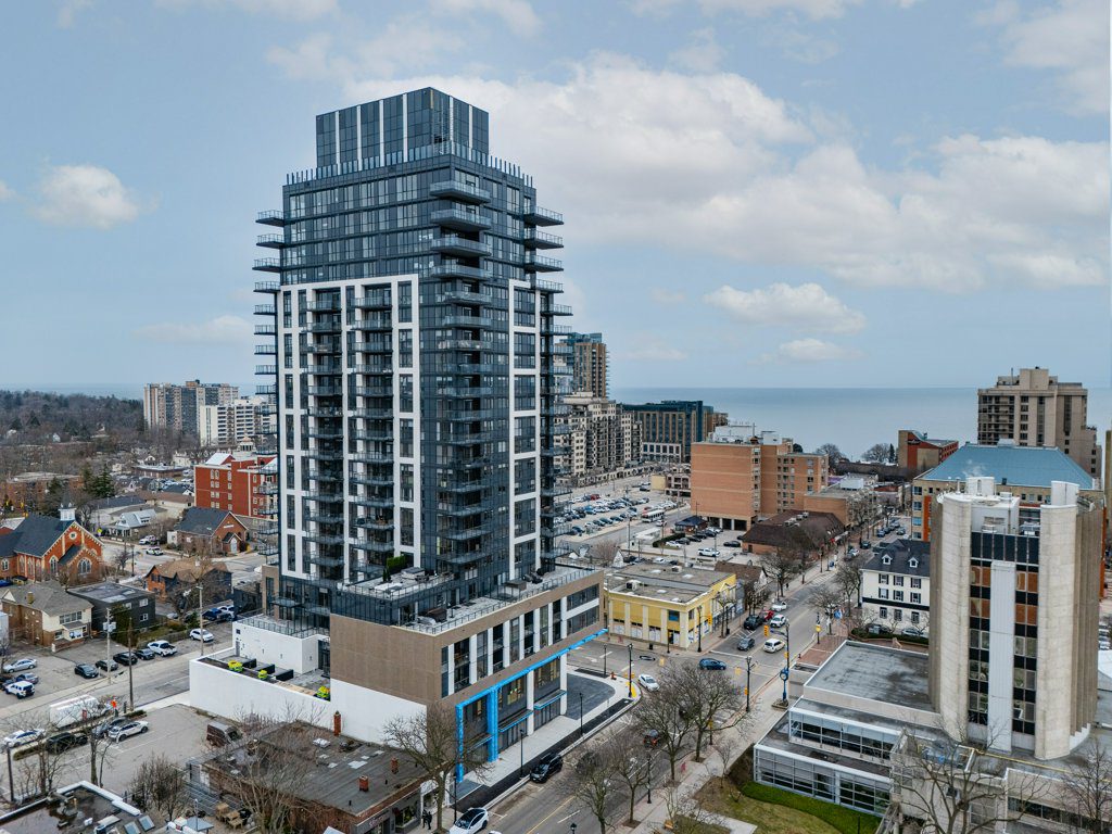 Stunning 1 bedroom, 1 bathroom unit in Carriage Gate Homes’ ‘Gallery Condos & Lofts’ situated in the heart of downtown Burlington. This 609 square foot ‘Louvre’ model is loaded with features including an open-concept floor plan, designer series wide-plank durable laminate flooring, a gorgeous kitchen with European-style 2-tone cabinetry with extended uppers, soft close doors/drawers, stainless steel appliances, quartz countertops, an under-mount stainless steel sink, a designer pull out faucet & modern porcelain tile backsplash, a dining space, a spacious living room with sliding doors leading to the 19.5’ x 8’ balcony with northern views towards the Niagara Escarpment, a primary retreat with an oversized closet, a 4 piece bathroom with porcelain floor tiling, quartz countertops, & a shower/extra-deep soaker tub combo. The unit also offers in-suite laundry facilities (stackable), energy-efficient windows & sliding doors with noise reduction technology, & an individually controlled 4-pipe fan coil system providing in-suite heating & cooling. 1 storage locker (#93 B506) & 1 underground parking spot (E46 on P5) are included. This contemporary 22-storey building is located directly across from Burlington’s City Hall with easy access to a vast network of waterfront parkland & nature trails including the renowned Spencer Smith Park. The gallery-inspired luxurious lobby features soaring 2-storey ceilings, stylish furnishings, a custom integrated fireplace and a 24-hour concierge service. This building is loaded with 14,000 square feet worth of indoor & outdoor amenity space including a party room with private dining space, a lounge & games area, a spa-inspired indoor pool with floor-to-ceiling windows, a fitness studio, a guest suite for your out-of-town visitors, an indoor/outdoor yoga studio, an outdoor terrace with a fire feature, an outdoor sun lounge, a rooftop terrace with scenic views of Lake Ontario & the surrounding area featuring barbecue stations and lounge seating, a pet wash on the main level, indoor bike storage & more. Exceptional location with easy access to the community’s many retail spaces, restaurants, shops, public transit, major transportation routes and more. Secure building with CCTV system monitored by the concierge.