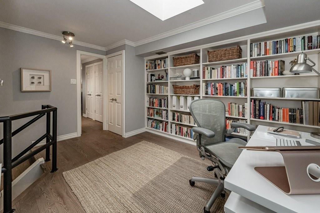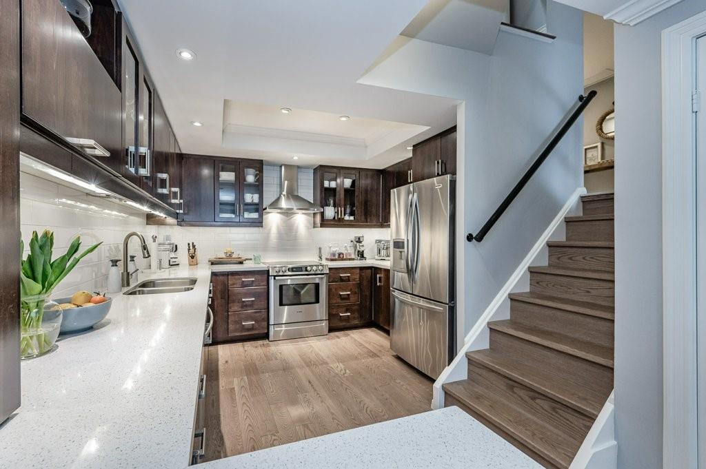 Stunning multi-level penthouse in ‘The Bentley’, a luxurious boutique condominium located in the heart of Toronto’s ‘Old Town’ neighbourhood. This 1 bdrm + den, 1.5 bath unit offers 1466 sq ft of living space, 427 sq ft of bonus in-unit storage, a 66 sq ft private terrace with NW views of Toronto’s skyline (only unit in main building w/ outdoor space), & 1 underground parking spot (#112). Feat incl a main lvl den w/ a wood burning FP/automated window coverings/sliding doors leading to the charming 66 sq ft outdoor terrace, an open-concept lower lvl w/ a spacious LR/DR area & an updated kitch offering quartz counters/S/S app/break bar, bonus 21.11 x 10 secret rec room (currently used as gym/bdrm area – possibilities are endless), an upper lvl sunken master w/ dbl closets/automated window coverings (incl black out blinds)/gorg 5 pc ebth w/ a pocket door/dbl van/undermount lighting/glass shower-tub combo/skylight, bdrm lvl laund, & a bonus office/loft space on the upper lvl w/ built-in cabinetry/2nd skylight. Other feat incl crown moulding, hrdwd flrs (replaced in 17), tray ceil, custom window cov, upd heat pump (13), & updated windows (19). Building amenities incl concierge, rooftop pool, rooftop gardens, large common terrace w/ BBQs & dining tables, & more. Monthly fee incl building ins, ext maint, use of common elem, parking, cable TV, heat, c-air, & water. Amazing location – short walk to the Eaton Centre, St. Lawrence Market, St. Michaels Hospital, & more.