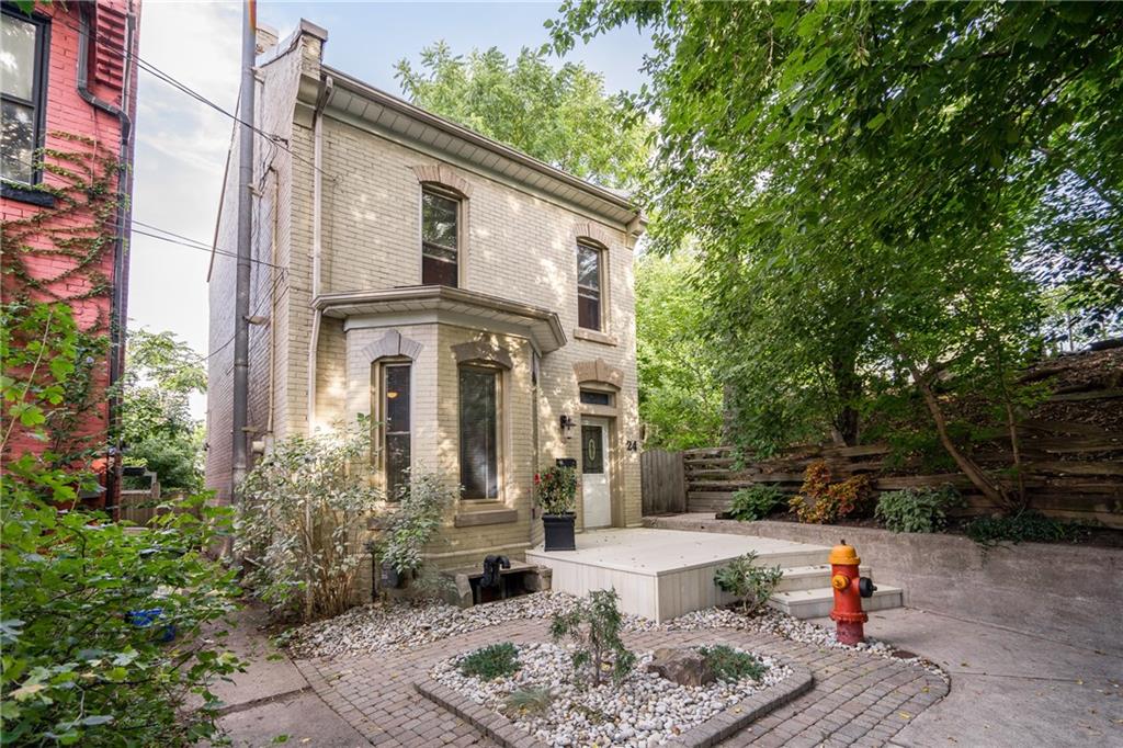 Circa 1885. 2017 Trillium award winning home. Steps to restaurants & shops on Locke St S. 3 bdrms & 1.5 baths. Det 1 car grg. Extensively updated & meticulously maintained. Loaded w/ feat incl hand scraped engineered hickory hardwood flrs, travertine tiling, 7” baseboards, 9 ft ceil in the LR/DR, gas FP w/ large mantle, gorg kitch w/ S/S app/granite/breakfast bar, Cali shutters, crown mouldings, cove ceilings, main flr bedroom (currently set up as den/office) w/ French doors to rear deck, updated baths (4 pc bath w/ partial glass shower/tub combo), main floor laund, ultra-low-maint mature lot w/ private rear oasis, newer front porch w/ composite deck & glass panels, stamped concrete walkways & garden edging, pet friendly artificial turf (no lawn), pristine gardens, newer rear fence, ‘smart’ rear light system (controlled from smart phone), oversized rear deck, & custom graffiti art by local artist on rear grg door (can be removed if buyer desires). Updated Furnace (2010), roof shing (2016), windows, ext drs, siding/soffits/fascia/eaves & elec (breakers & no known K&T). Modern conveniences w/ old world charm.
