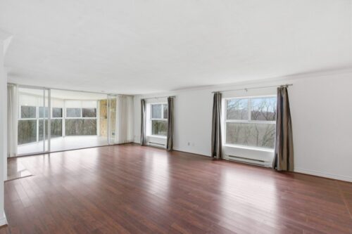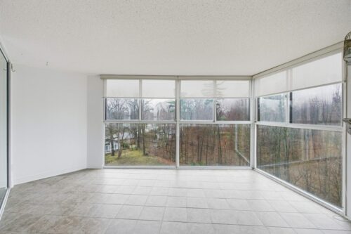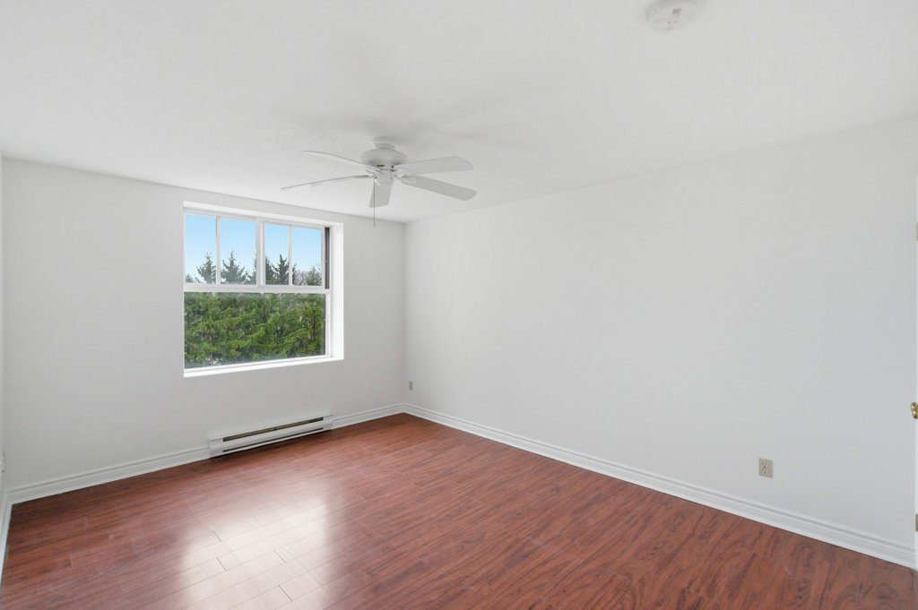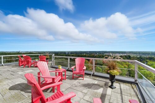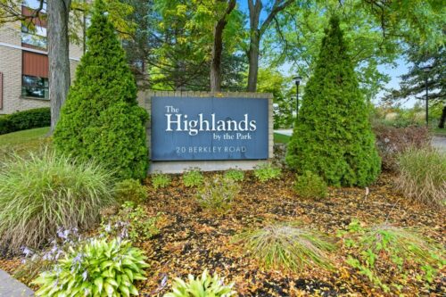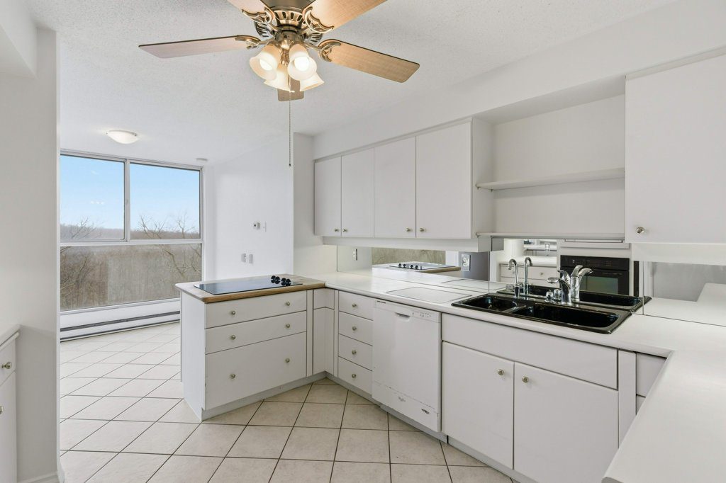 Welcome to The Highlands by the Park; 20 Berkley Road. Nestled atop a hill at the end of a quiet cul-de-sac in historic West Galt, this prestigious condominium offers tranquility, privacy, and sweeping views of nature and the city skyline. Overlooking a majestic woodlot, Victoria Park and beyond, this building is one of Cambridge’s hidden gems. This spacious 2,418 sq ft, carpet-free unit offers a rare combination of size, layout, and natural light. With 3 generously sized bedrooms, 2 full bathrooms, and a thoughtfully designed floor plan, it’s ideal for those seeking comfort and functionality. Step into an impressive foyer with mirrored walls and a large closet before entering the bright eat-in kitchen, complete with ceramic tile, crisp white cabinetry, built-in range top, track lighting and a cozy breakfast nook overlooking lush greenery. The kitchen opens into a formal dining room with laminate flooring and elegant wall sconces; perfect for entertaining. The adjacent oversized living room features a wood-burning fireplace (sold as-is) and leads to a bright all-season solarium with floor-to-ceiling windows, ideal as a den, office, or creative space. Down the hallway are three spacious bedrooms, including a large primary suite with two windows, an expansive walk-in closet, and a 5-piece ensuite. A second 4-piece guest bath serves the remaining bedrooms. The in-suite laundry is tucked off the main hallway. Recent updates include new toilet in guest bath (2026) & fresh paint throughout (2026). Building amenities include a rooftop terrace with panoramic views, seating and barbecue, a party room with full kitchen and lounge, meeting room, exercise room, and well-maintained common spaces. Includes one underground parking spot with tandem storage locker. Don’t miss this rare opportunity to live in a peaceful, elevated community surrounded by nature, minutes from West Galt.