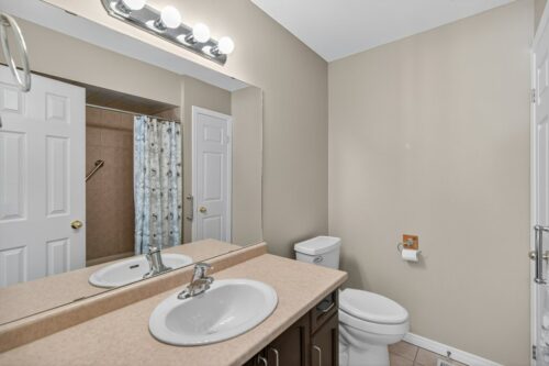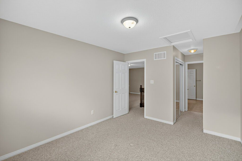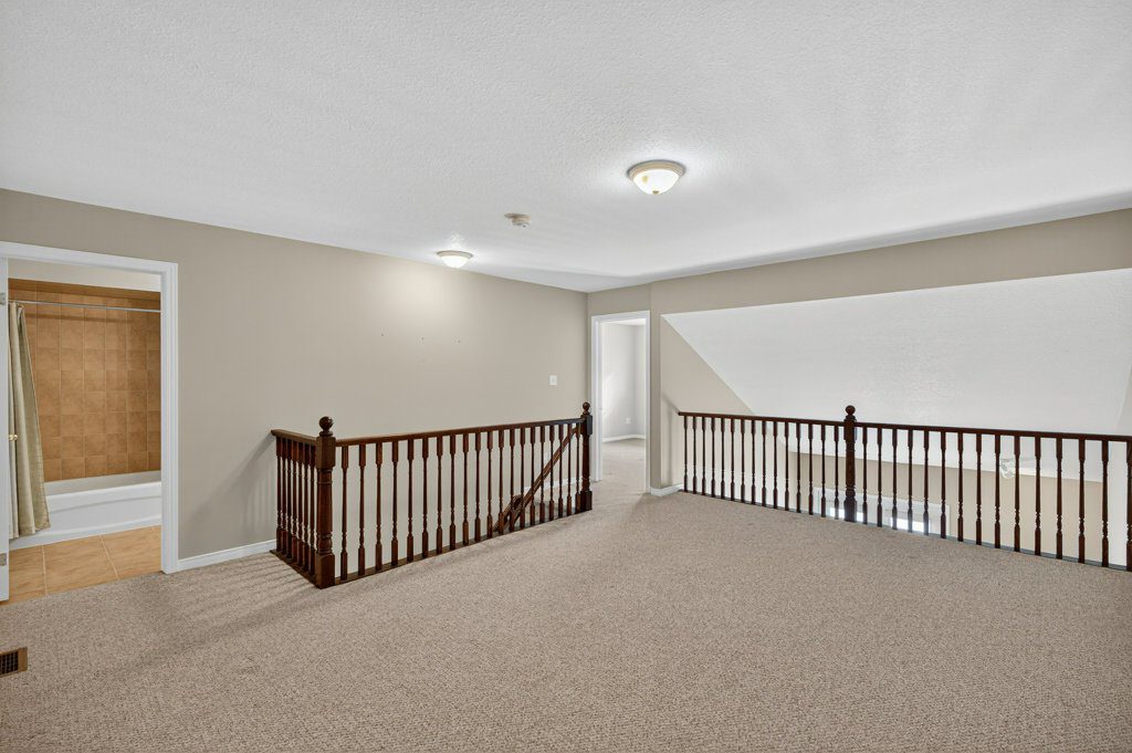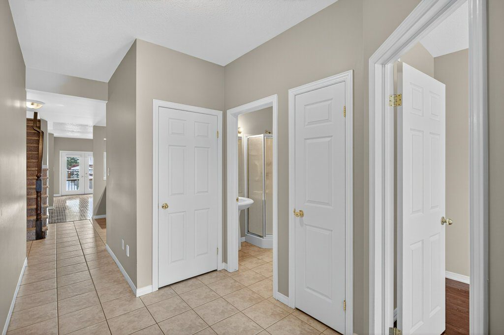 An exceptional opportunity to own a beautifully maintained 3-bedroom, 3-bathroom bungaloft in the highly sought-after Garth Trails community. Offering 1,782 square feet of thoughtfully designed living space, this home showcases a timeless brick and stone façade, a single garage with inside entry, and a private single-car driveway. The main level features a generous foyer with both a storage & bonus linen closet, leading to a bright front bedroom and a convenient 3-piece bathroom with a corner shower. The spacious kitchen provides abundant cabinetry, a peninsula with seating, and a seamless connection to the open-concept living and dining area. A charming corner gas fireplace anchors the space, while French doors open to the rear deck overlooking tranquil green space with no neighbouring unit directly behind. The soaring vaulted ceiling enhances the airy feel and draws the eye to the loft above. A desirable main-floor primary bedroom offers double closets and a well-appointed 4-piece ensuite complete with a linen closet. Main-floor laundry adds everyday convenience. The upper level features a versatile open loft overlooking the living room – ideal as a family room, office, or hobby space – plus a third bedroom with double closets and ensuite privileges to a full 4-piece bathroom. The large, unfinished basement provides exceptional storage or potential for future customization. Painted in neutral tones and updated with recent roof shingles, a furnace (October 2025), and more, this home is truly move-in ready. Ideally located, residents enjoy the best of Garth Trails living. Moments from the spectacular residents’ clubhouse, the community offers a vibrant adult-lifestyle experience with resort-style amenities: indoor pool, sauna, whirlpool, fitness centre, games and craft rooms, tennis and pickleball courts, bocce, shuffleboard, putting green, and a grand ballroom for year-round social events. Stroll the private parkland, take in the pond’s wildlife, and enjoy the ease of low-maintenance, turnkey living.