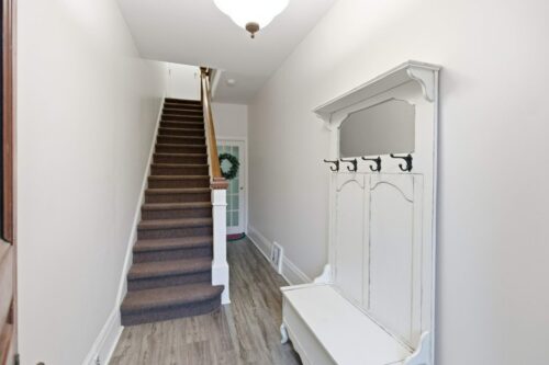 Nestled in the heart of picturesque Dundas, this beautifully maintained 2-bedroom, 1-bathroom executive rental blends historic charm with modern convenience. Set on the 2nd & 3rd levels of this charming 2.5-storey home, this thoughtfully updated red-brick home circa 1895 offers a warm and inviting living experience just steps from the vibrant downtown core. The open-concept main level features a spacious living and dining room combination, highlighted by an authentic exposed brick wall and upgraded lighting that enhances the home’s character. The galley-style kitchen is both efficient and stylish, complete with a fridge, stove, and microwave – perfect for everyday cooking or weekend entertaining. On the upper level, two generous bedrooms provide comfortable retreats, including convenient in-suite laundry with a washer/dryer combination located in the second bedroom. The recently updated 3-piece bathroom features a sleek corner glass shower and contemporary finishes throughout. Additional comforts include professional painting and new carpeting to be completed prior to move-in, ensuring a fresh and welcoming space. Heat is included, driveway tandem parking for two is available on a monthly alternating basis, and tenants are responsible for 45% of the home’s hydro and water, as well as snow removal. Living in downtown Dundas offers an unmatched lifestyle – stroll to boutique shops, acclaimed restaurants, cafés, the Dundas Valley Conservation Area, charming historic streetscapes, and year-round community events. Experience the perfect blend of walkability, small-town character, and natural beauty in one of the region’s most sought-after communities. Note: new fridge, stove, microwave and combination washer/dryer to be installed prior to possession Rental application, full credit report with beacon score, employment/income verification and references all required.