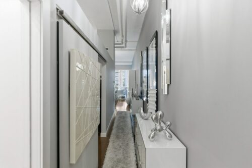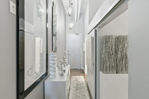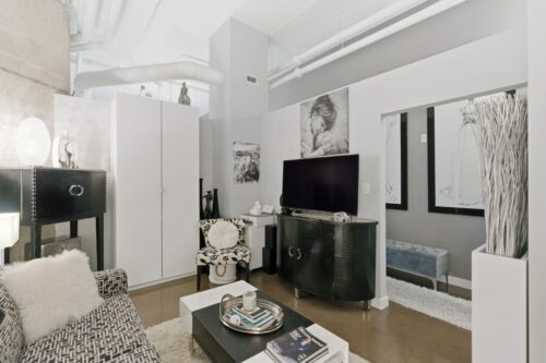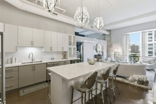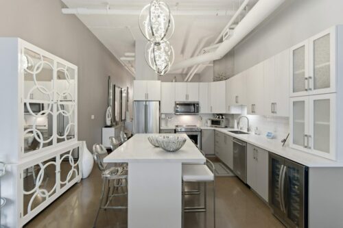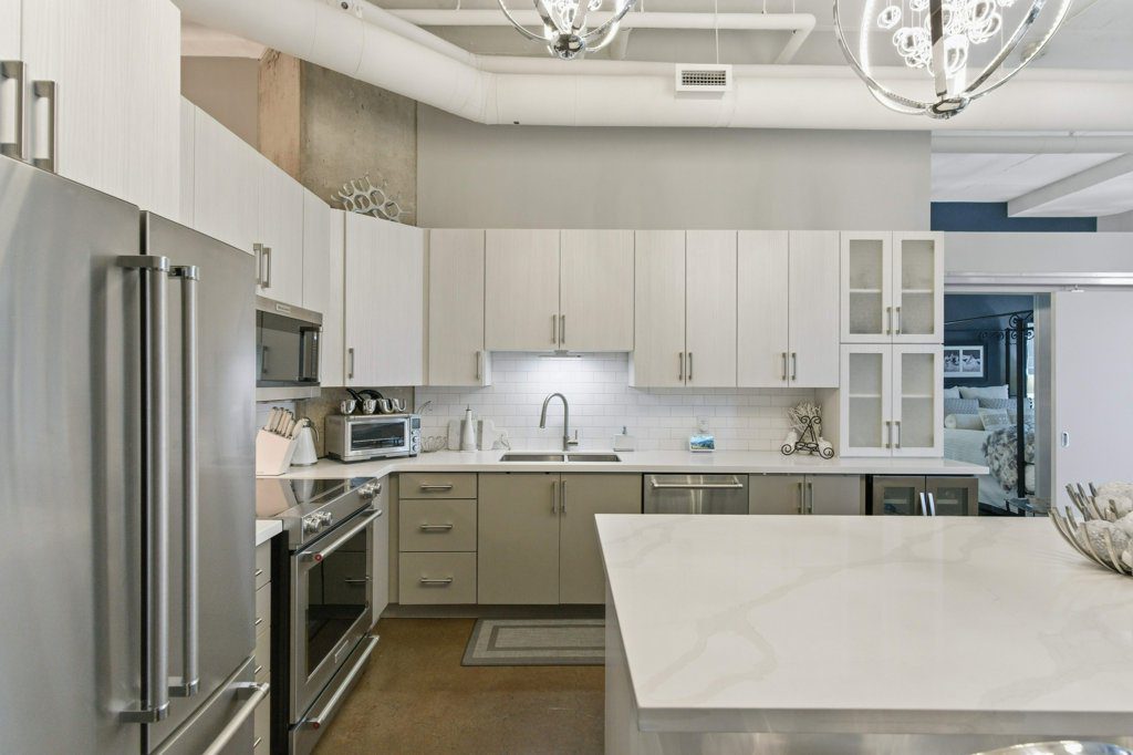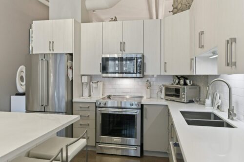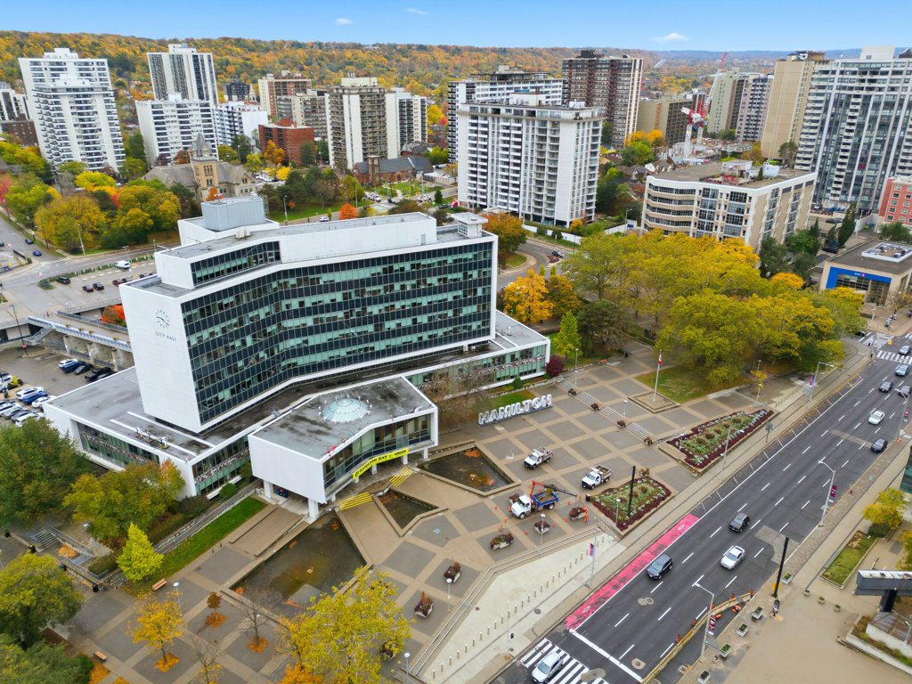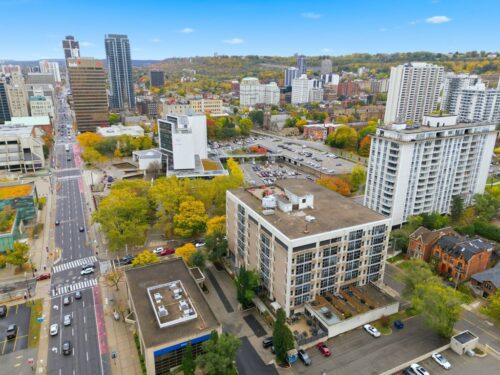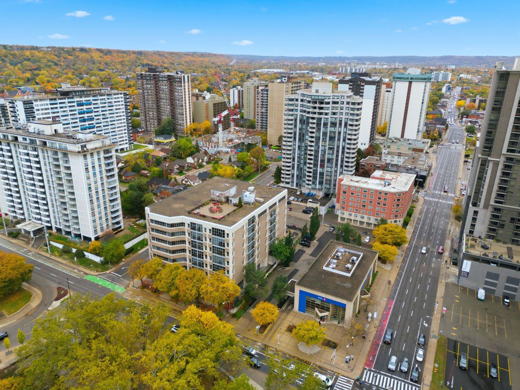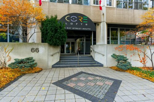 Welcome to Core Lofts – Hamilton’s premier loft condominium, ideally situated in the heart of the city’s coveted Durand neighbourhood. Once a former Bell Canada office building, this landmark conversion seamlessly blends industrial character with sophisticated urban design. This exceptional 1143 square foot, 2-bedroom, 2-bathroom penthouse offers an elevated living experience with western exposure. Polished concrete floors, soaring 12.5-foot ceilings, and expansive windows create a striking open-concept environment filled with natural light. The custom-renovated kitchen is a true showpiece, featuring bespoke cabinetry, sleek quartz countertops, a stylish tiled backsplash, stainless steel appliances (including a beverage fridge), and a large centre island with dual overhang seating for up to eight – perfect for entertaining. The spacious living room opens to a Juliette balcony overlooking the city skyline, while the primary retreat features an oversized closet, an oversized custom wardrobe system and a luxurious and upgraded 3-piece ensuite with an oversized glass shower and modern finishes. A second bedroom, currently utilized as a den, provides flexibility for a home office or guest suite. The beautifully updated 4-piece main bathroom features a tub/shower combo with a glass enclosure. Additional highlights include in-suite laundry, upgraded lighting throughout, a tandem 2-car parking space (#59 PL-2 Level A), and an oversized storage locker (#23 on the penthouse level). Residents of Core Lofts enjoy access to a rooftop terrace (easy access from the penthouse level) with panoramic views of Hamilton and the Niagara Escarpment, complete with BBQ areas and multiple seating zones. Additional amenities include a well-equipped gym, a stylish lobby, and a modern meeting room. Recent notable building improvements include elevators, HVAC systems, & improved entry security/security gates. The location at 66 Bay Street South is second to none – steps to vibrant James Street, the GO Station for easy commuting to Toronto, restaurants, shops, St. Joseph’s Hospital, and the Downtown Arts District. Walk to parks, trails, cafés, and everything downtown Hamilton has to offer. This rare penthouse offering combines timeless industrial style, urban convenience, and luxurious comfort – truly one of Hamilton’s most impressive loft residences.